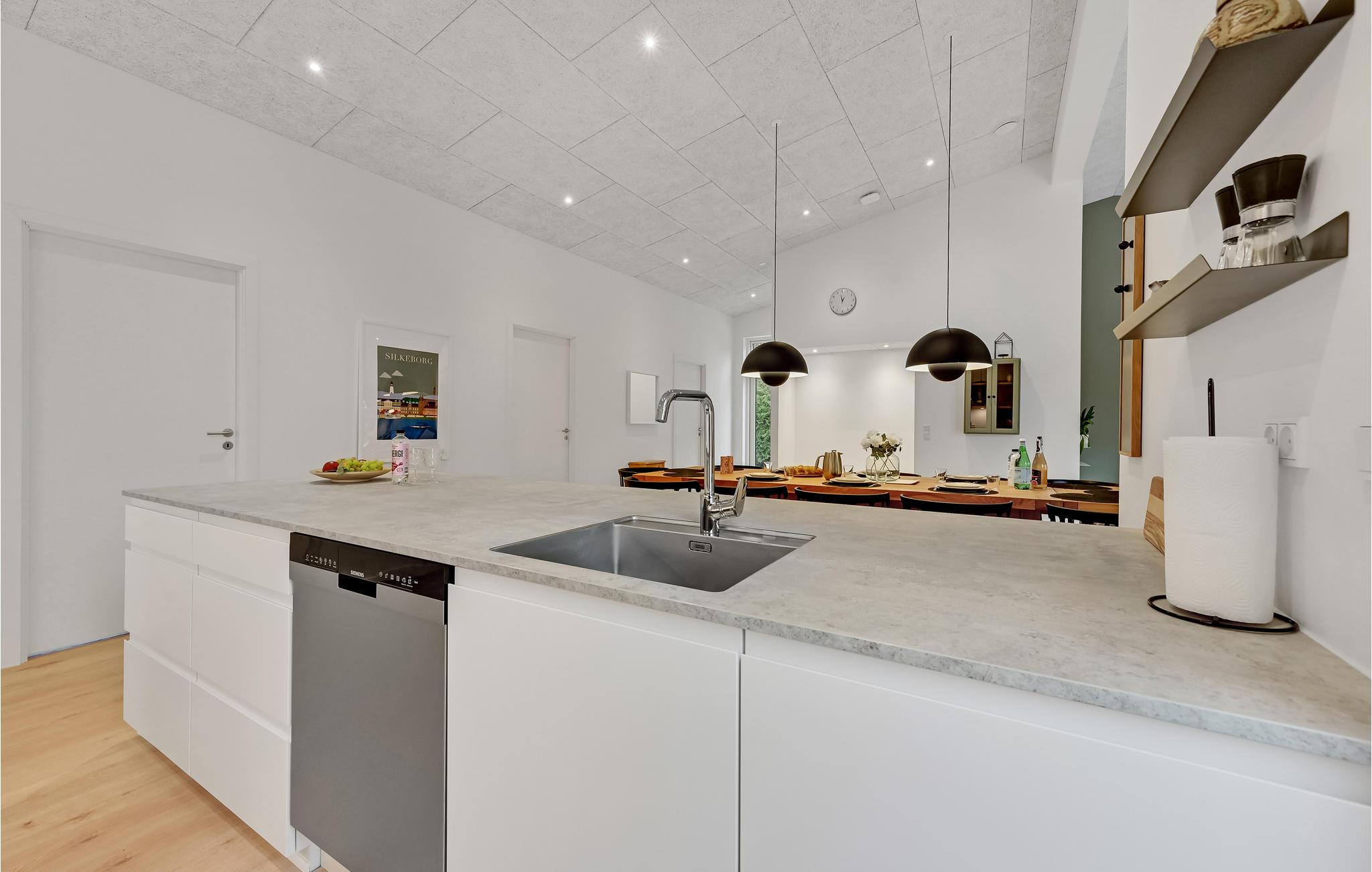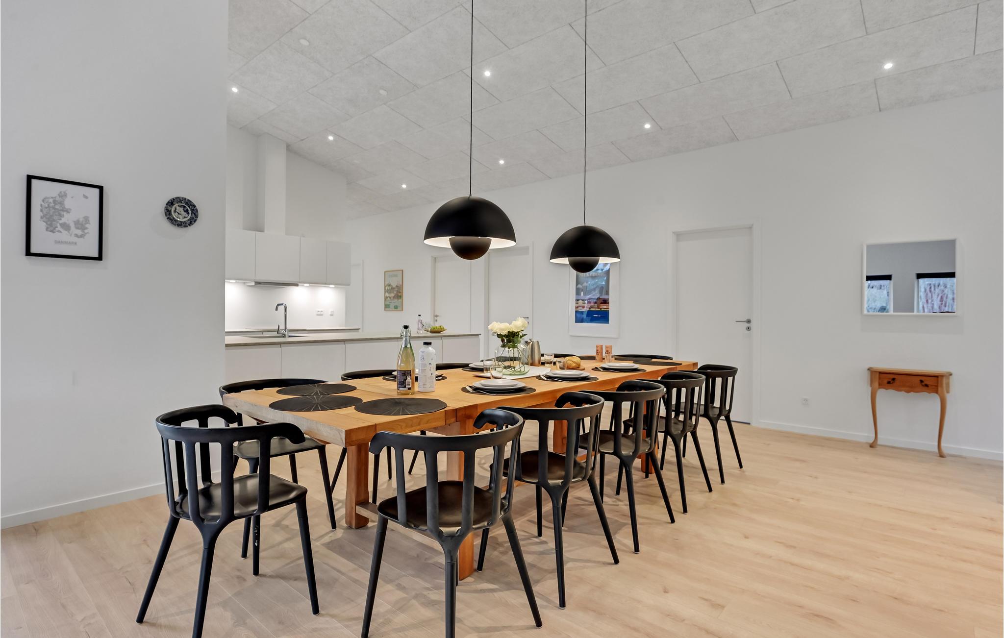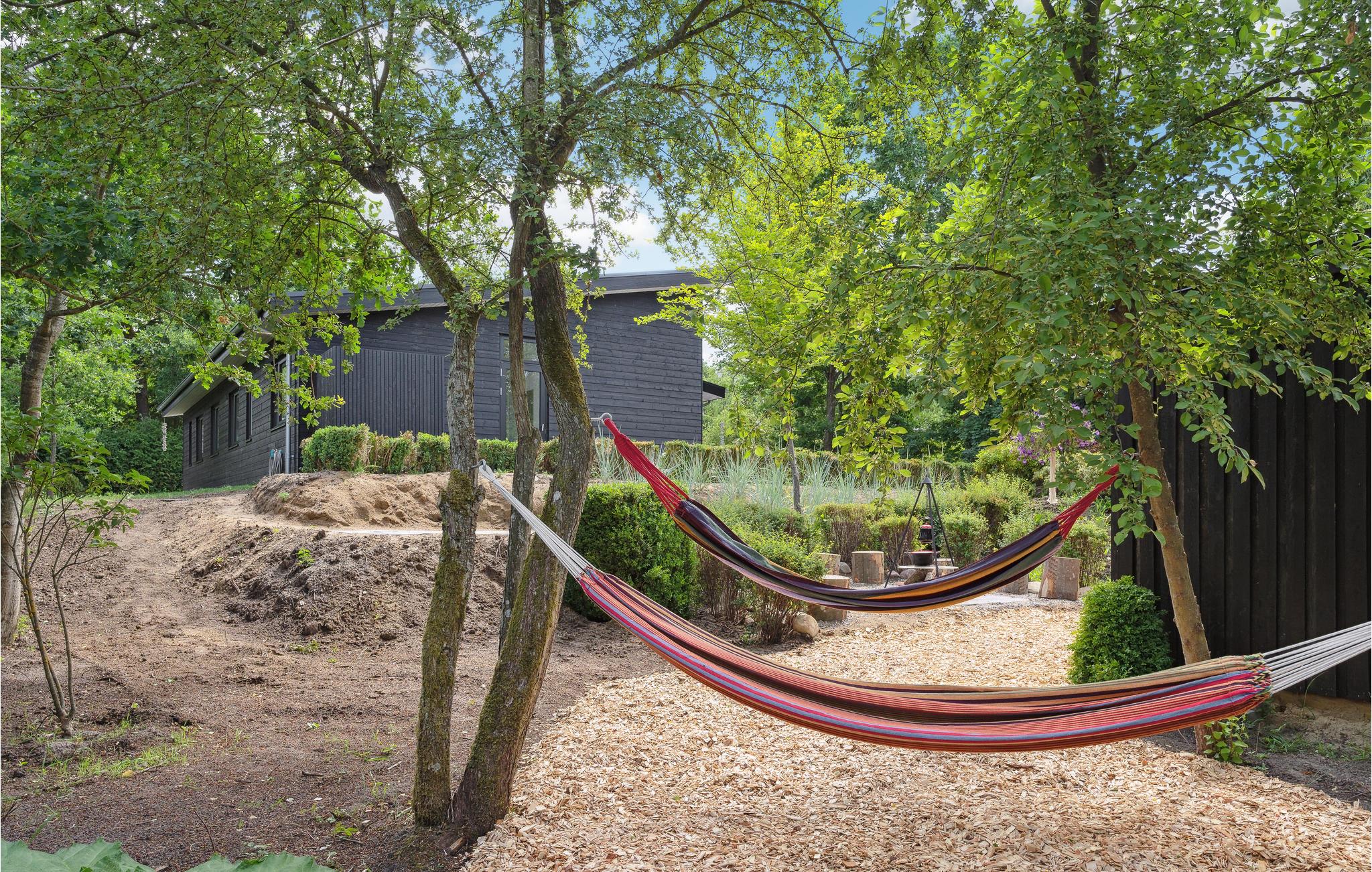 Dette moderne, rummelige hus byder velkommen til en større familie eller gruppe af venner. Føl jer rigtig godt tilpas i de lyse lokaler. I disse stilfulde rammer vil det være nemt for jer at lægge hverdagen bag jer. Spis sammen ved det lange spisebord og tilbring hyggelige aftener i sofaen, hvorfra I kan nyde en magisk udsigt til omgivelserne. Ejendommen byder på masser af plads til at lege og slappe af. Tag jeres kaffe med udenfor og nyd solen, mens jeres børn boltrer sig.