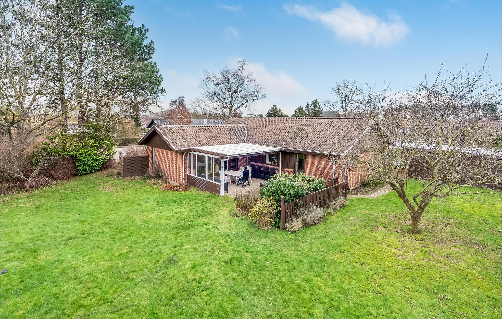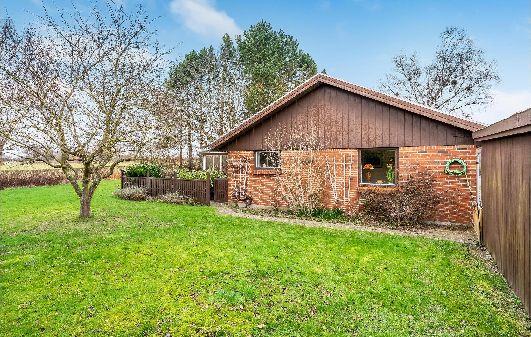 Hyggeligt feriehus i Tullebølle med dejlig have, overdækket terrasse og udsigt til åbne marker.