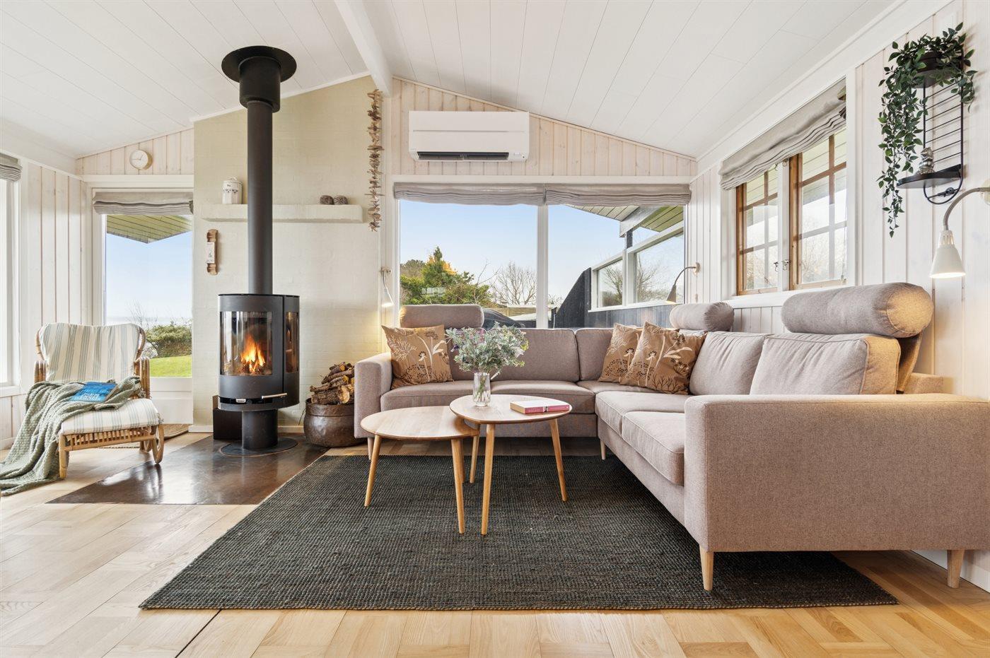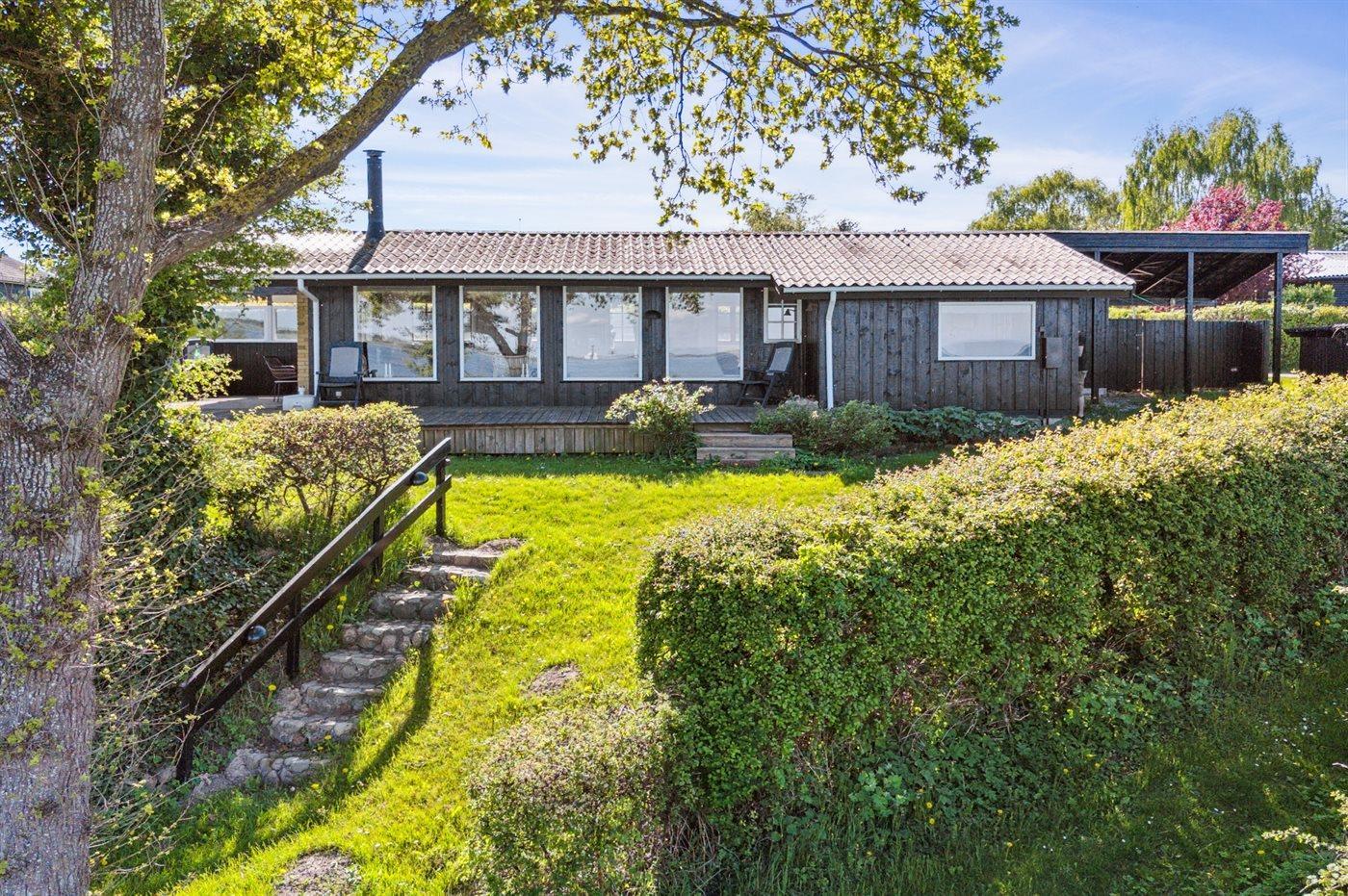 Moderne sommerhus i første række til fjorden på Tuse Næs med panoramaudsigt og egen strandadgang.
