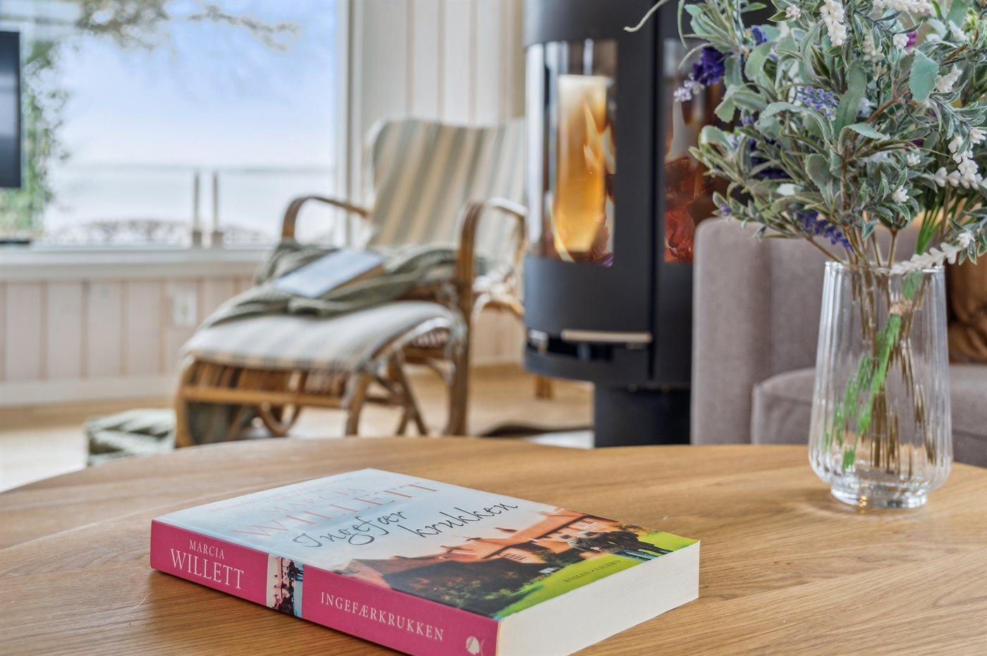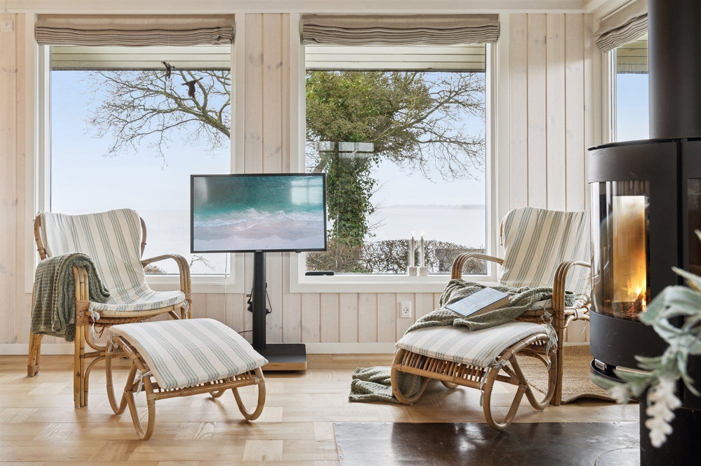 Dette skønne sommerhus er beliggende på spidsen af halvøen Tuse Næs i 1. række til vandkanten og med fuld panoramaudsigt over fjorden og Orø. I klart vejr er der endda kig helt til Hundested. Fra køkkenalrummet og stuen er der via det store vinduesbånd rig mulighed for at nyde den betagende udsigt og iagttage lystsejlerne og følge vejrets skiften.