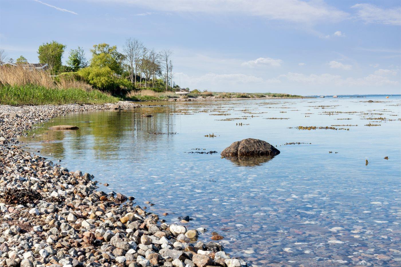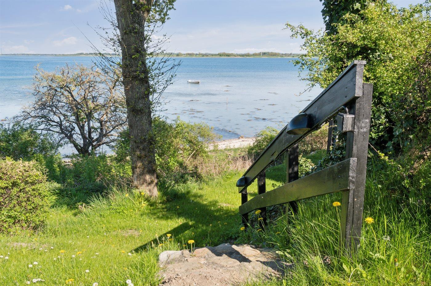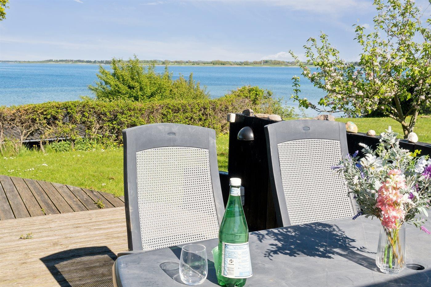 Den store grund går helt ned til vandkanten og via egen trappe er der mulighed for at komme ned på stranden. På de store terrasseområder er der mulighed for at nyde solen og det gode vejr.
