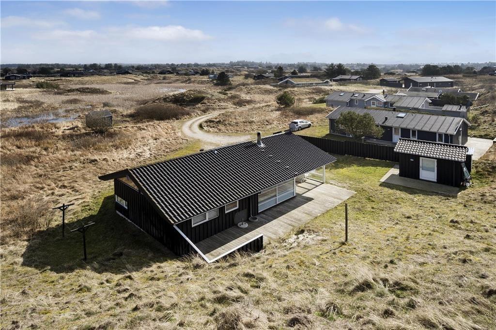 Sommerhuset strækker sig på en stor naturgrund for enden af en bakke, hvilket giver en følelse af at være i en fredfyldt dal, langt væk fra travlhed. En sti fører gennem klitterne til havet, der ligger blot et stenkast væk. På vestsiden af huset finder du en lang, privat terrasse, hvor du kan nyde måltider i læ for vinden, mens du på østsiden kan beundre en ubeskrivelig udsigt over Paradisdalens klitlandskab.