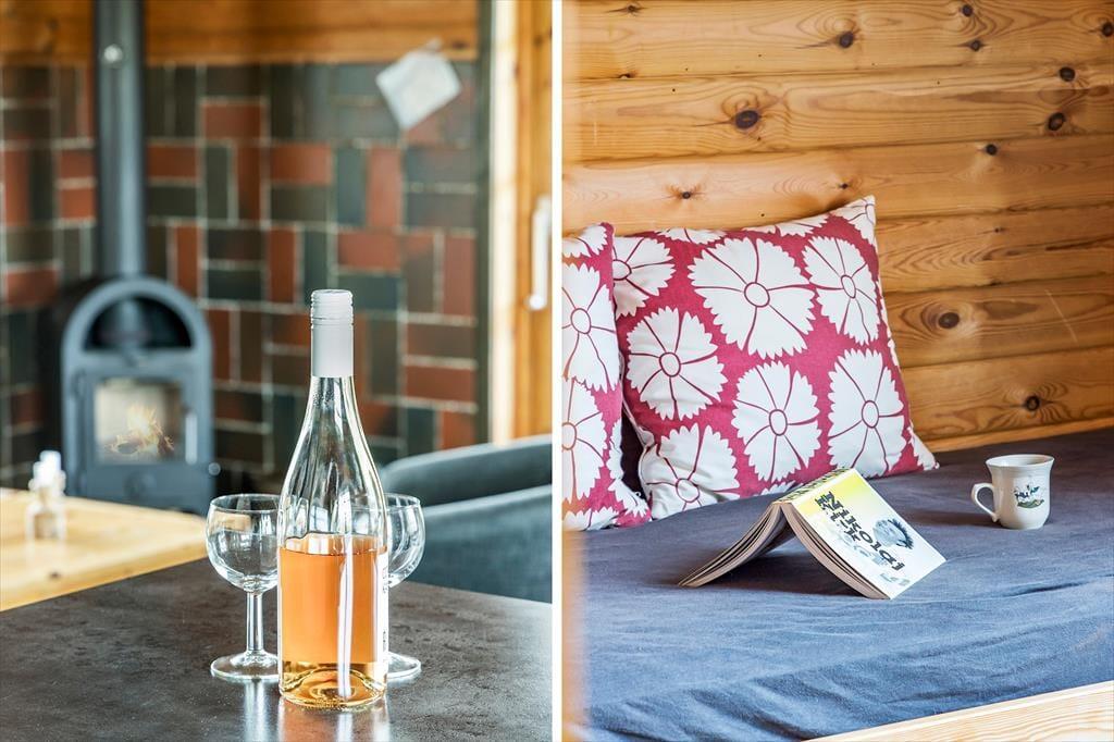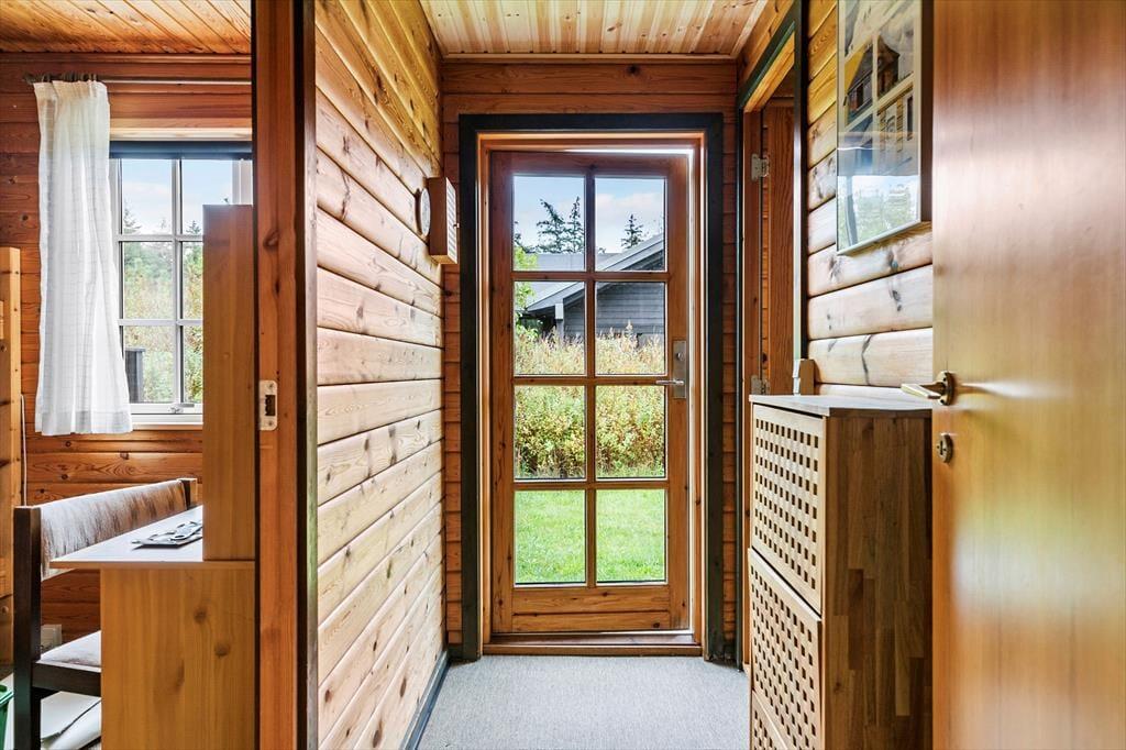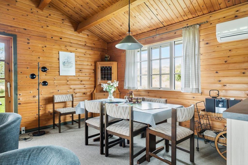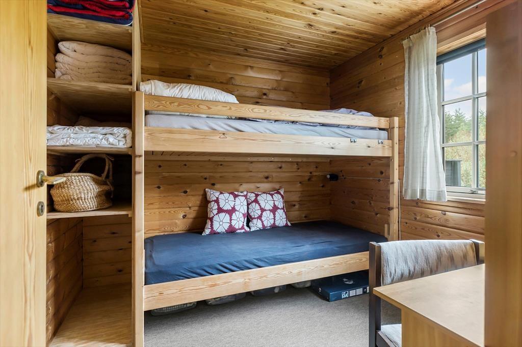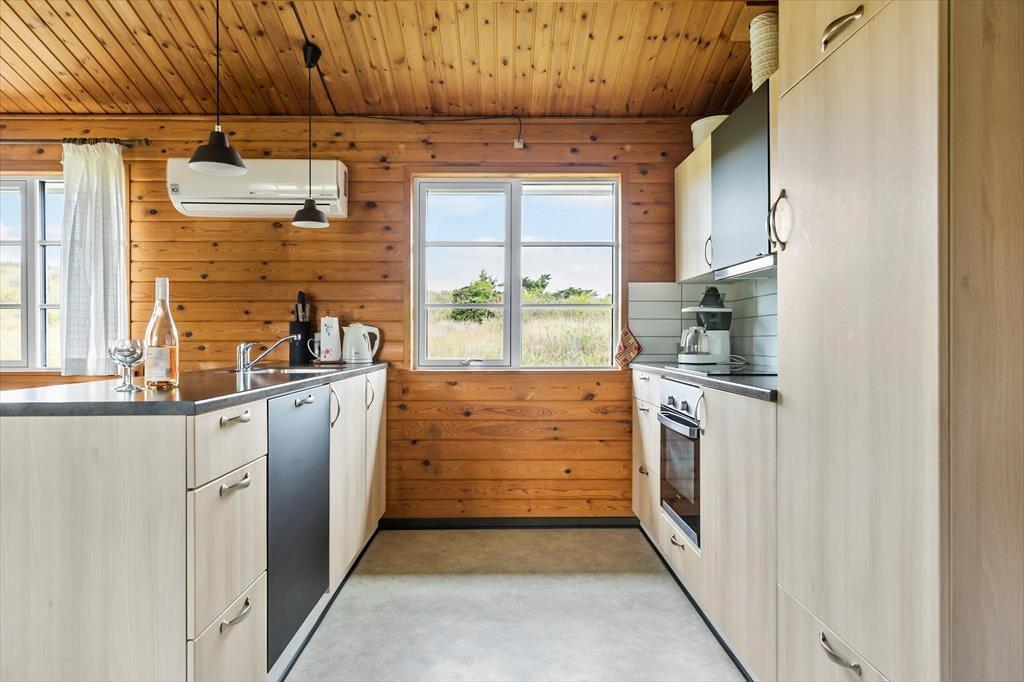 Indenfor bliver du mødt af en varm og indbydende atmosfære, hvor hyggelige detaljer sætter rammen for din ferie. Den rummelige stue med brændeovn er perfekt til afslapning efter en dag fyldt med oplevelser – måske med en god bog eller en film på fladskærms-tv’et. Køkkenet ligger i åben forbindelse med stuen, hvilket gør det let at være sammen, uanset om I laver mad, spiller spil eller bare nyder hinandens selskab. Soveværelserne inviterer til lange, afslappede morgener, og badeværelset er praktisk indrettet, så alle føler sig godt tilpas under opholdet.