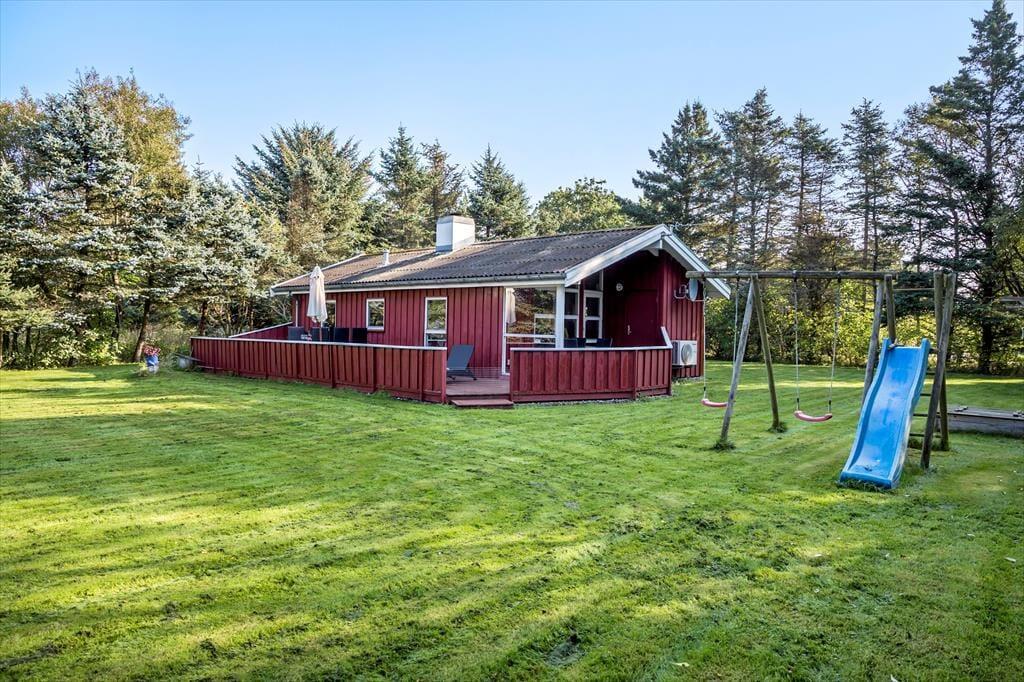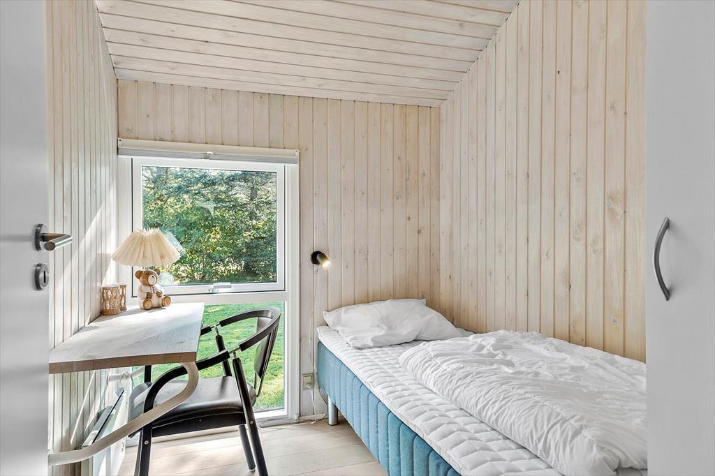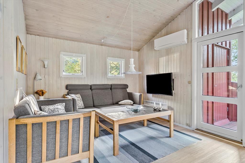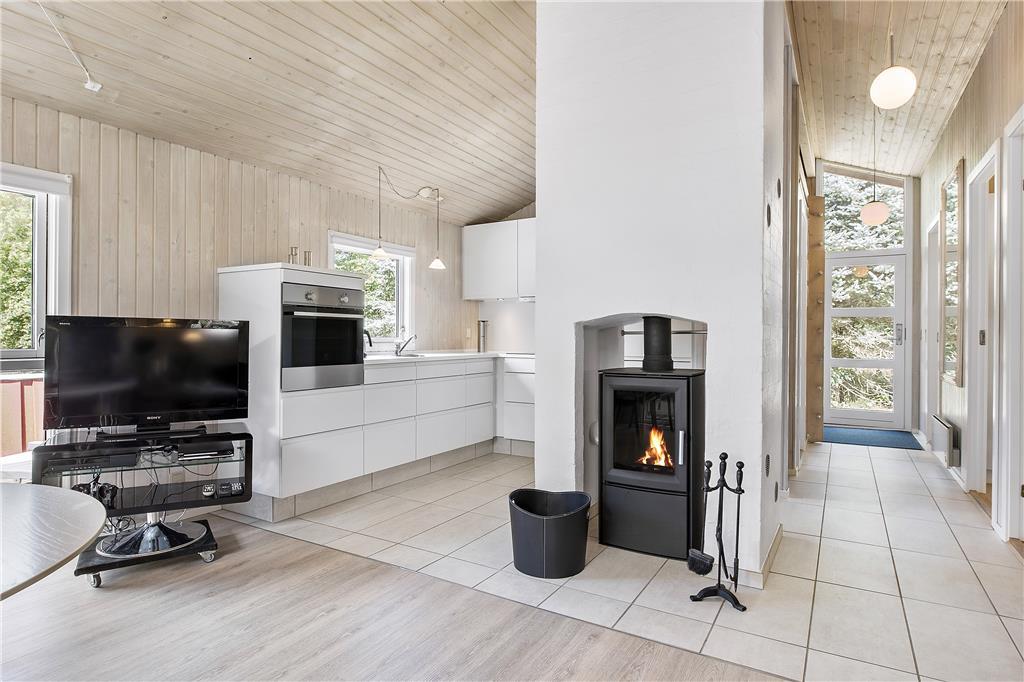 Indenfor møder du en lys og venlig indretning, der straks skaber en hyggelig atmosfære. Stuen er rummelig og indrettet med bløde møbler, så hele familien kan samles til en god film eller brætspil foran brændeovnen. De store vinduer lader masser af dagslys strømme ind og giver udsigt til haven, så du altid har naturen tæt på. Det åbne køkken gør det let at tilberede lækre måltider, mens samtalen fortsætter med dem, der slapper af i stuen. Huset har tre soveværelser, der indbyder til afslapning, og badeværelset er praktisk og velindrettet – ideelt til en ferie i afslapningens tegn.