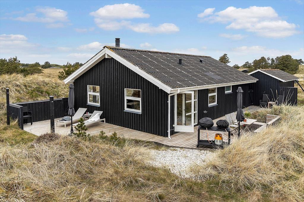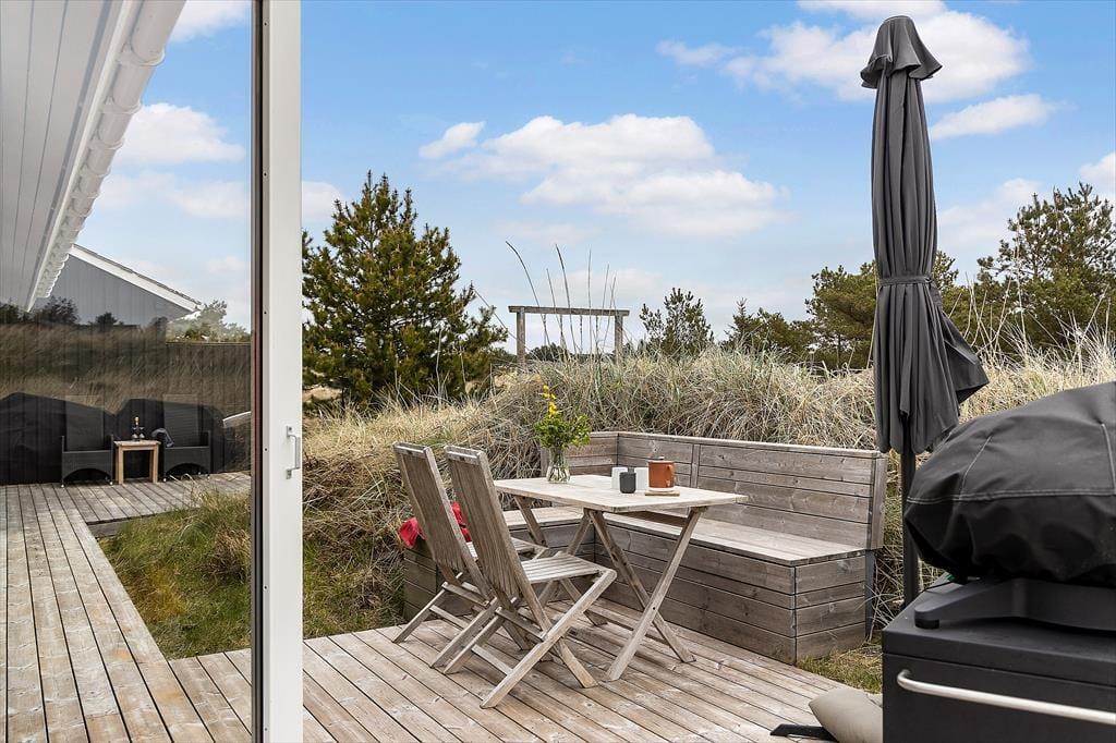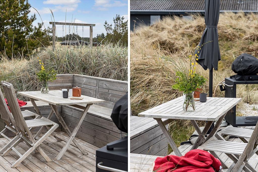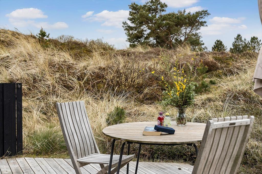 Midt i naturen og omgivet af høje træer kan du på terrassen mærke roen sænke sig. Sommerhusets udendørsarealer er som skabt til lange, afslappede dage i solen, hvad enten du vil læse en bog, grille med familien eller bare nyde lyden af vinden, der rasler i træerne. Haven giver børnene plads til fri leg, og de voksne kan finde skyggefulde kroge til en rolig stund. Med naturen som nabo og en helt særlig feriestemning kan du let glemme tid og sted, når du er her.