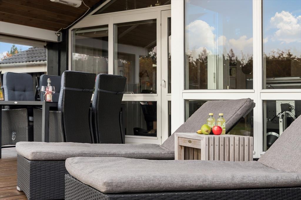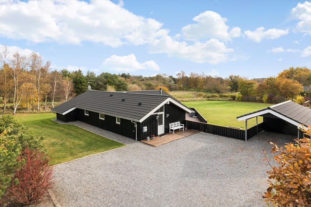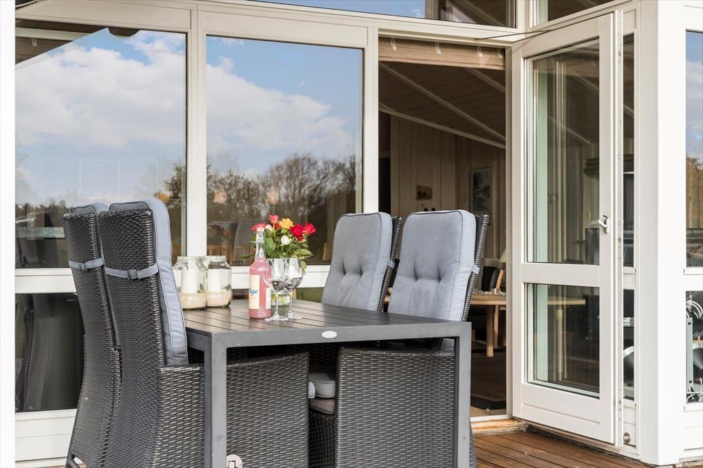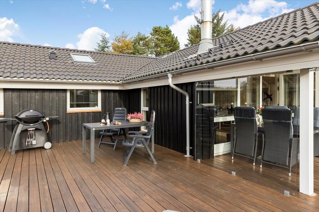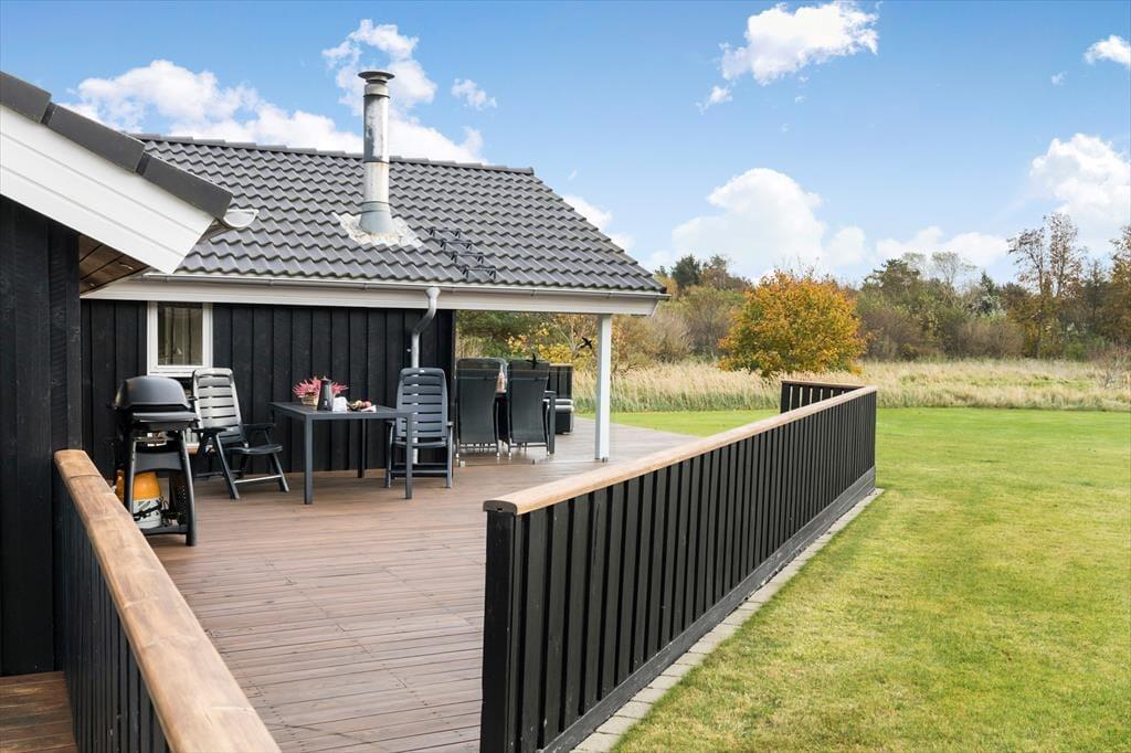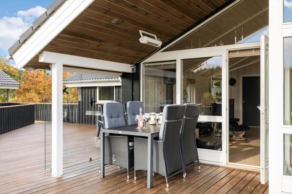 Udendørsarealerne er lige så indbydende som huset selv. Den store terrasse er perfekt til at nyde solens stråler eller til at afslutte dagen med en middag under åben himmel. Haven omgiver huset med grønne nuancer og en privat atmosfære, der indbyder til stilhed og refleksion. Med de velholdte omgivelser og en fredfyldt stemning er dette stedet, hvor du virkelig kan trække vejret og finde ro i naturen.