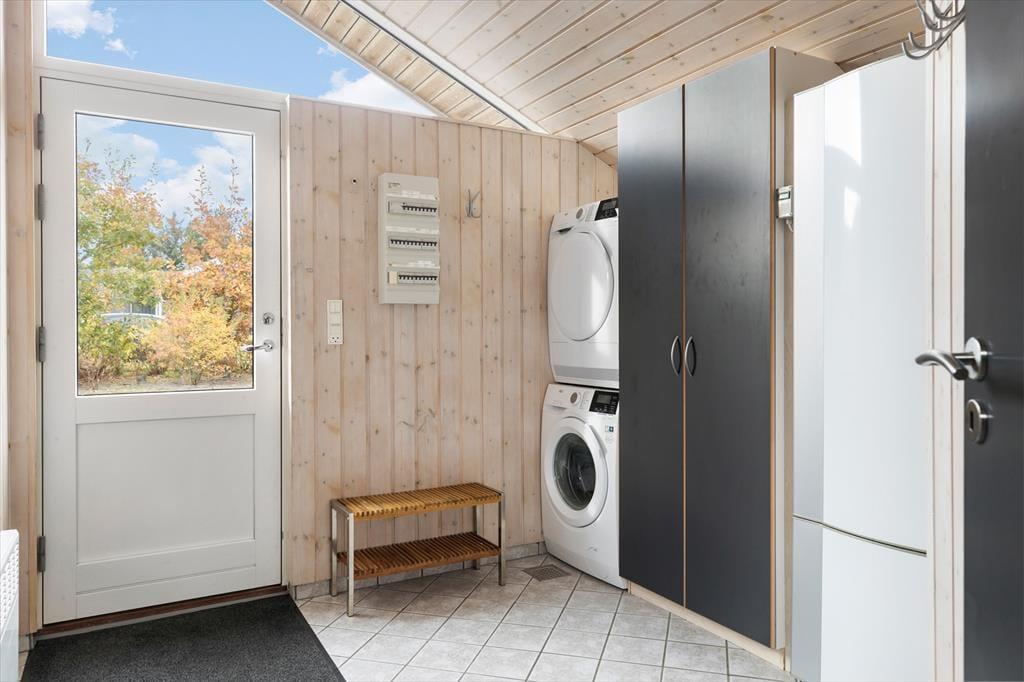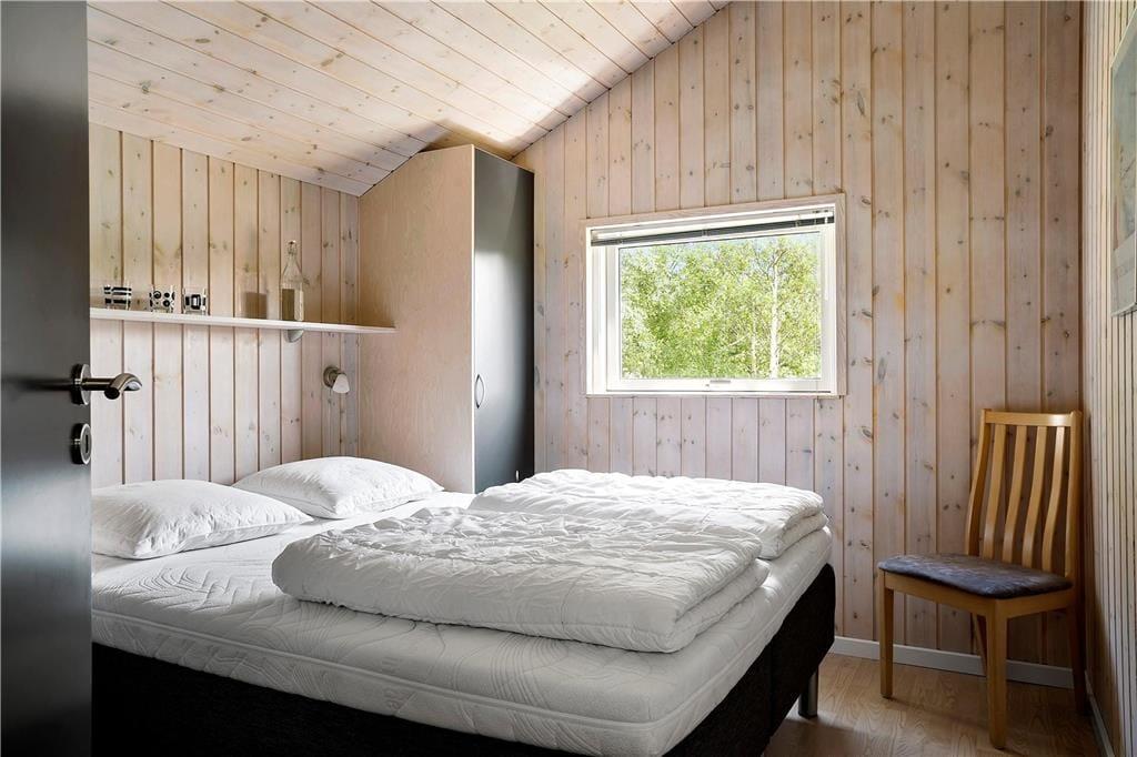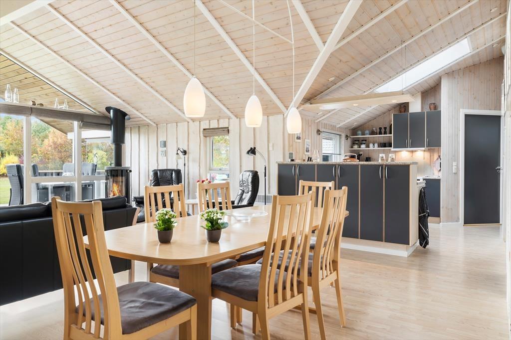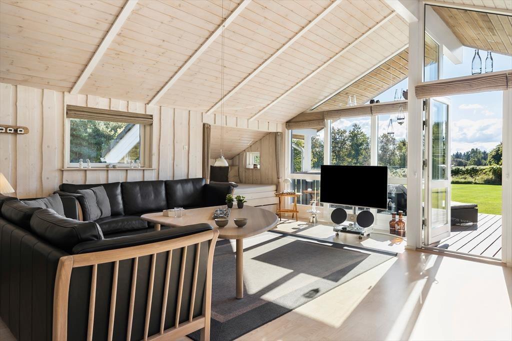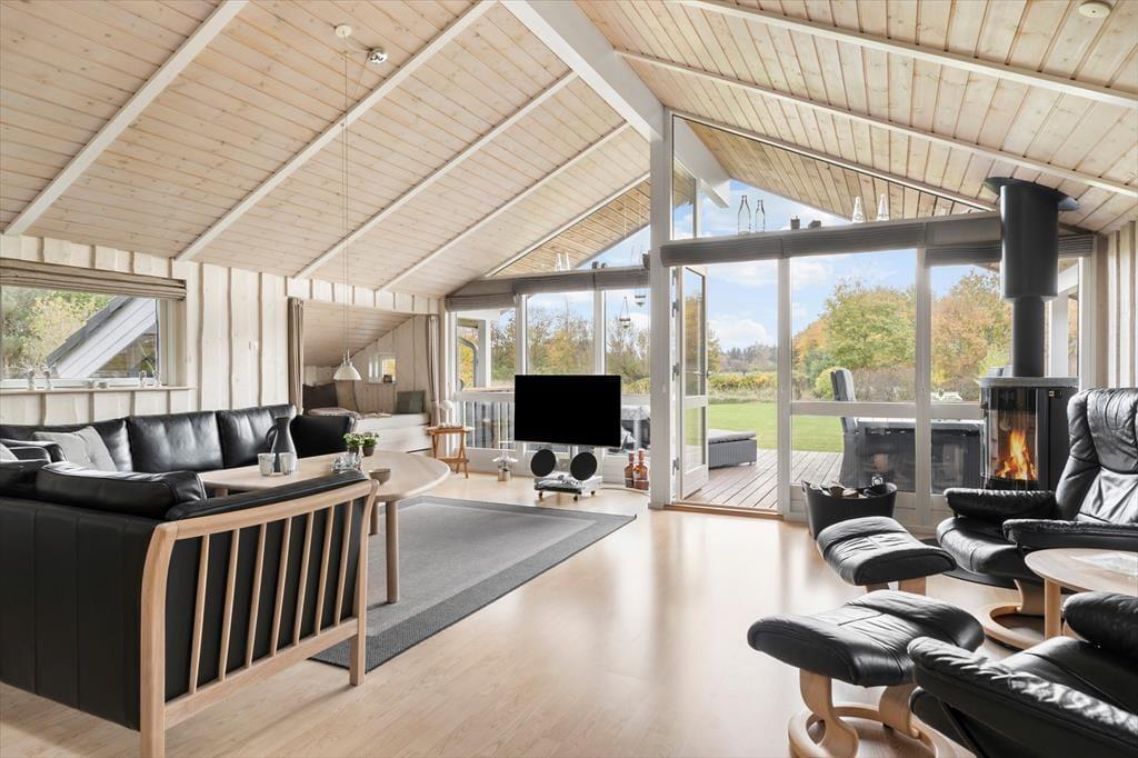 Sommerhuset byder dig velkommen med en lys og rummelig indretning, der straks giver en følelse af velvære. Stuen er åben og hyggelig, og de store vinduer trækker naturen helt ind i opholdsrummet. Alkoven i stuen er et særligt plus – et stille hjørne, hvor du kan fordybe dig i en god bog eller blot nyde øjeblikkets ro. Køkkenet, som er i åben forbindelse med stuen, gør det let at være sammen om måltiderne, og de komfortable soveværelser indbyder til lange, afslappende morgener. Huset emmer af harmoni og giver dig plads til både samvær og egne stunder.