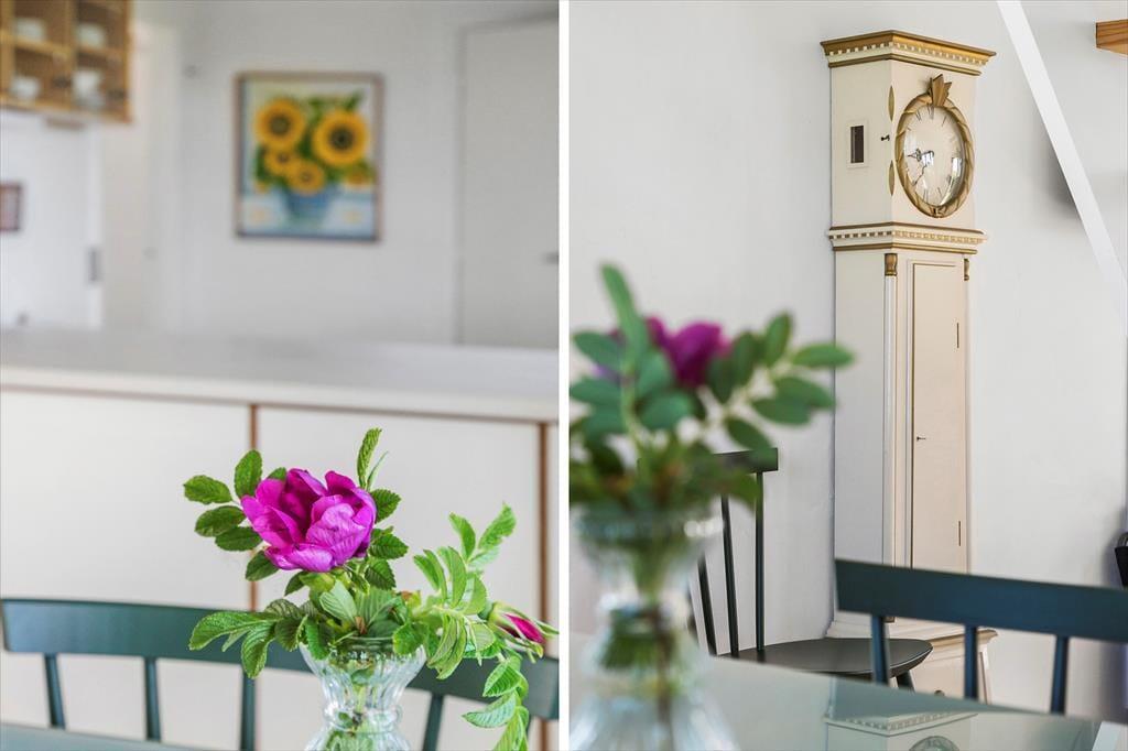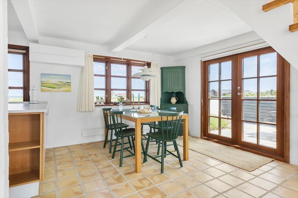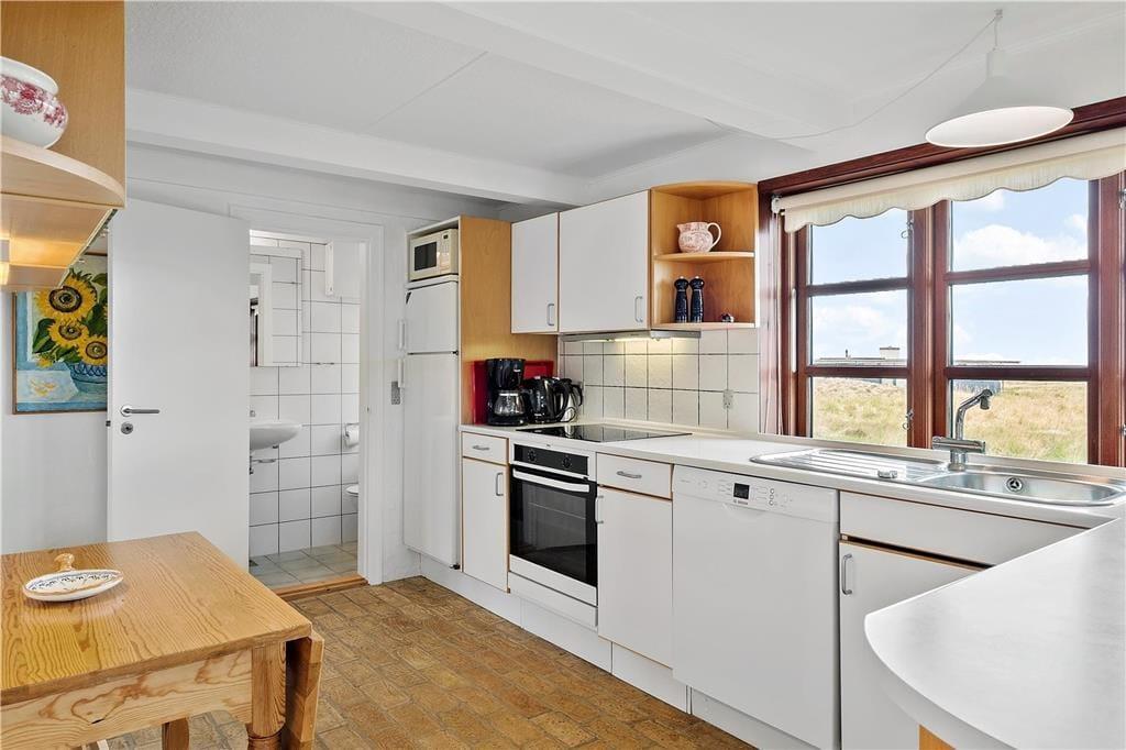 Indenfor bliver du mødt af en lys og varm atmosfære, der straks får dig til at føle dig hjemme. Huset er indrettet med fokus på hygge og komfort – fra de bløde møbler i stuen til de smukke detaljer, der gør huset helt særligt. Store vinduer trækker lyset ind og giver en fantastisk udsigt til Vesterhavet, som du kan nyde, uanset om du sidder ved spisebordet eller slapper af foran brændeovnen. Den åbne planløsning mellem køkken og stue gør det nemt at være sammen, mens der laves mad eller deles historier fra dagens oplevelser.
