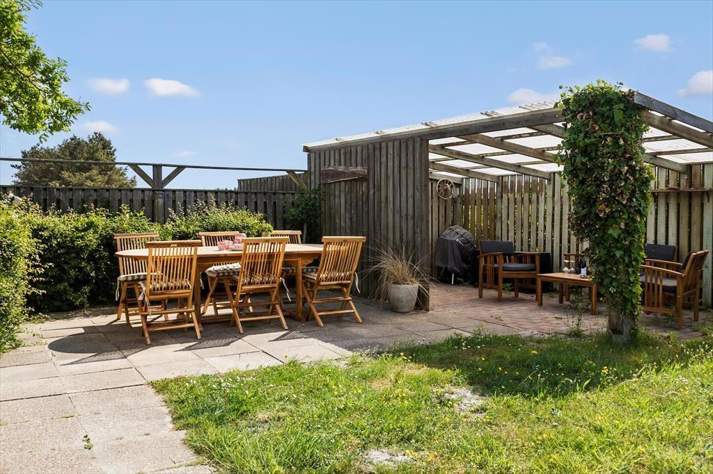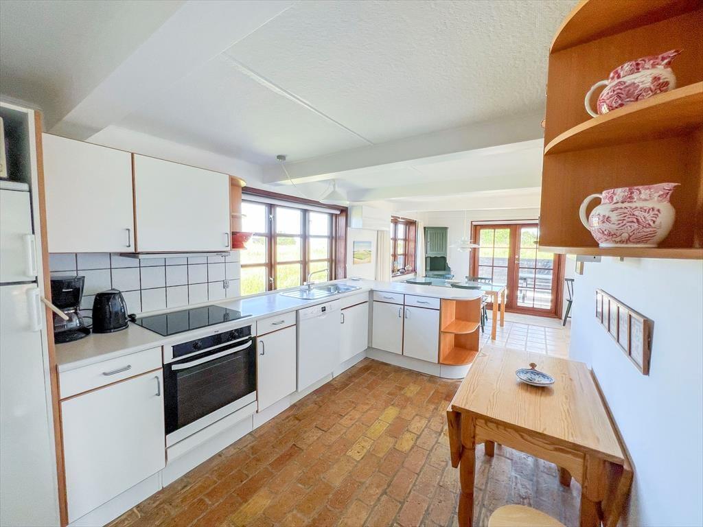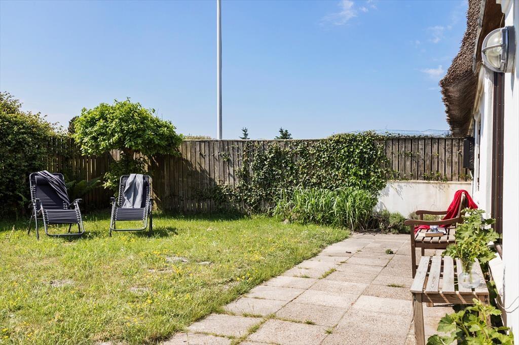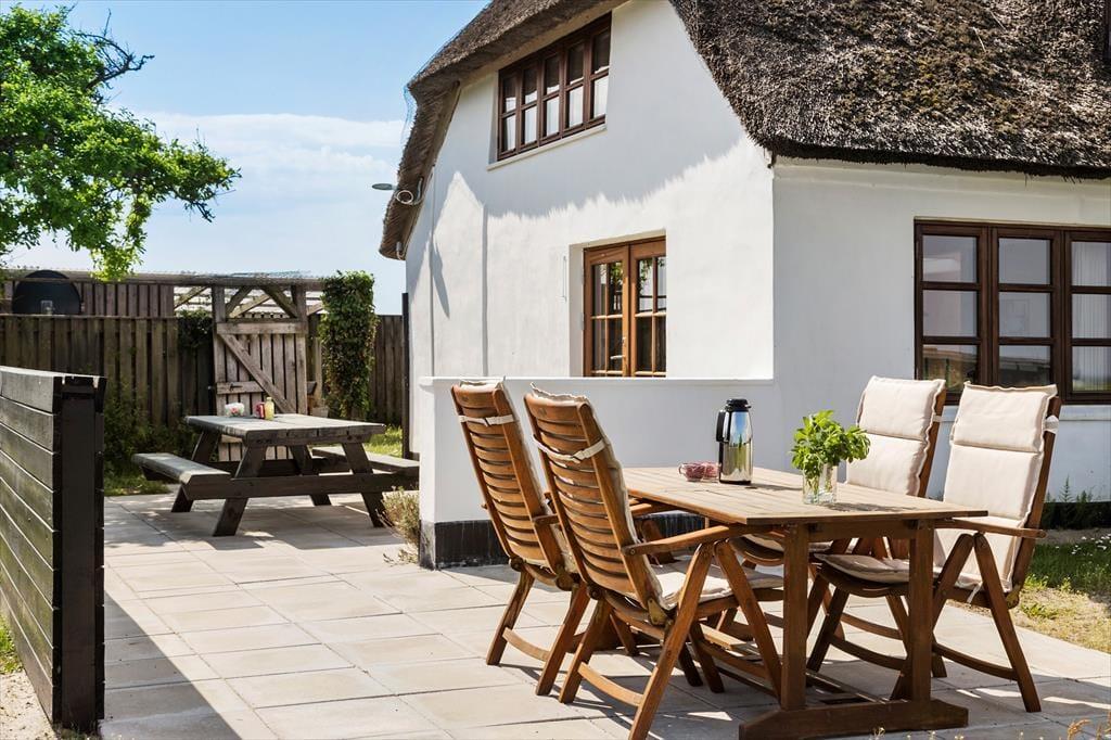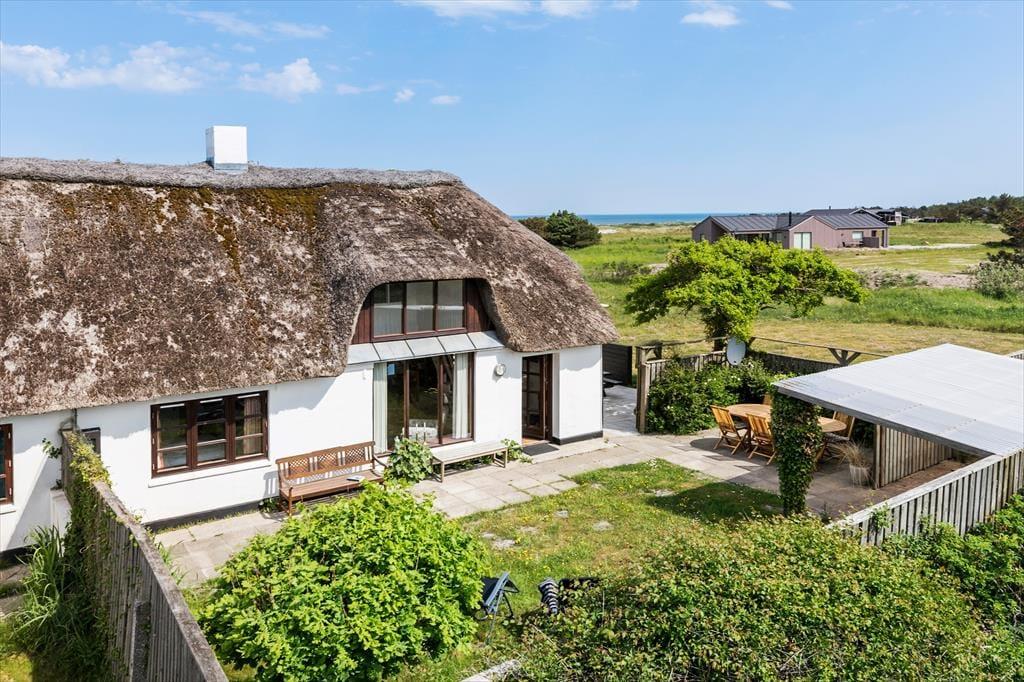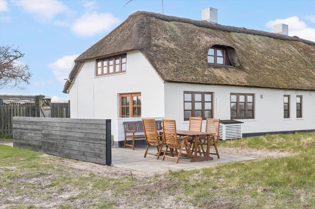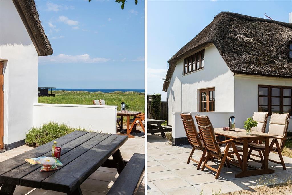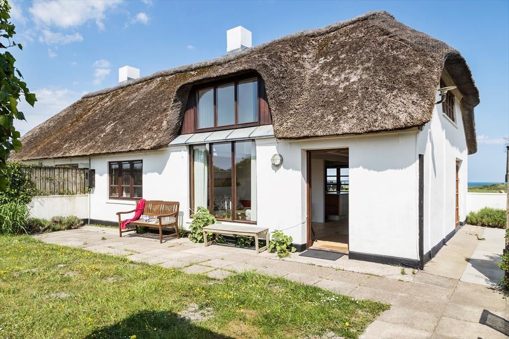 Huset har en skøn solgård, der fungerer som en privat oase, hvor du kan nyde solen hele dagen. Her finder du gode havemøbler og en grill, så du kan samles til hyggelige måltider under åben himmel. Den stråtækte ejendom ligger på en unik beliggenhed med en panoramaudsigt til Vesterhavet, der virkelig skal opleves – her kan du lade blikket vandre ud over det åbne landskab og det glitrende vand. Om aftenen skaber solnedgangen en magisk stemning, som gør ethvert øjeblik helt særligt.