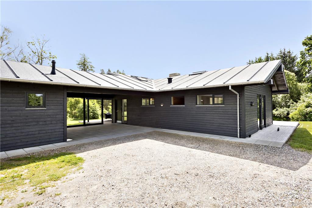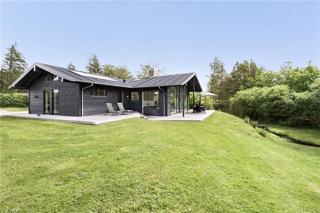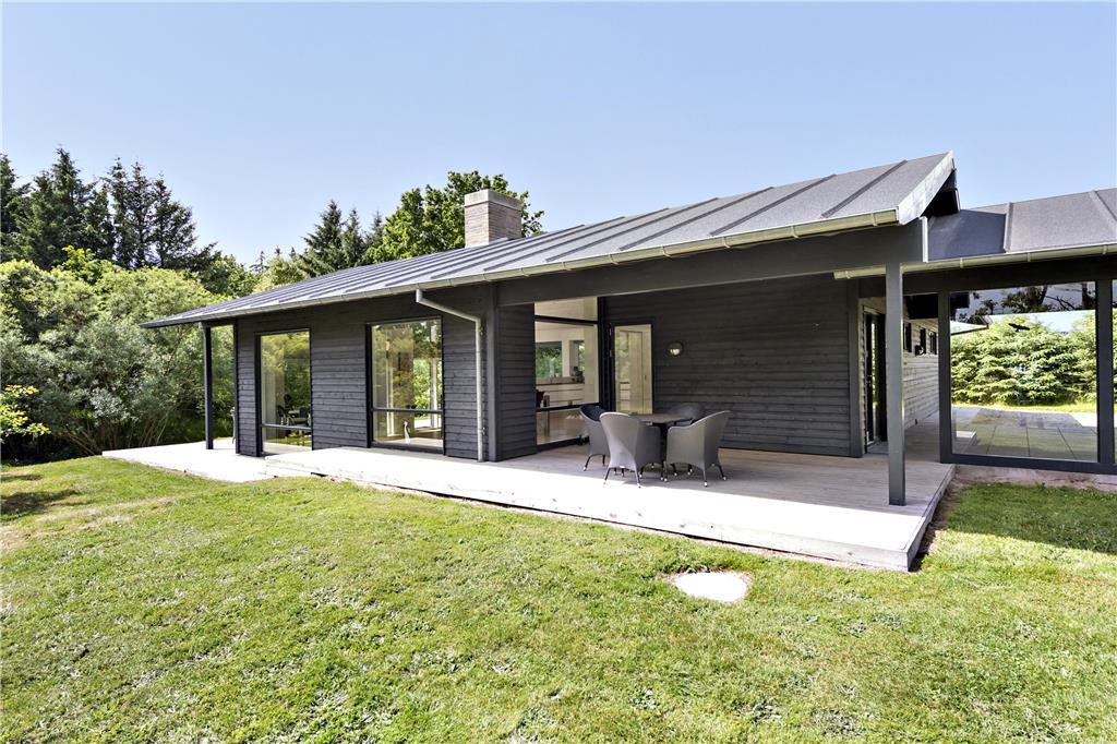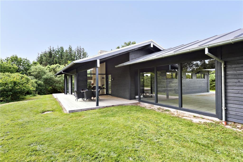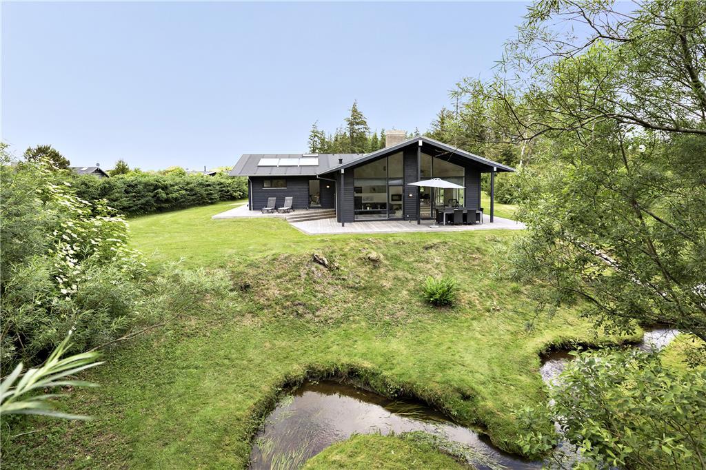 Udenfor venter et skønt terrassemiljø, hvor du kan starte dagen med morgenkaffen, mens du lytter til fuglesangen og ser dyrelivet udfolde sig lige udenfor. Flodbækken, der bugter sig gennem det lavereliggende område, giver en helt særlig stemning til haven. Terrassen er ideel til grillmiddage og afslapning i solen, og med plads til både børn og voksne er her alle muligheder for at nyde ferielivet i det fri.