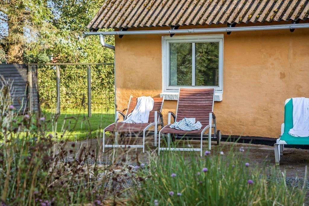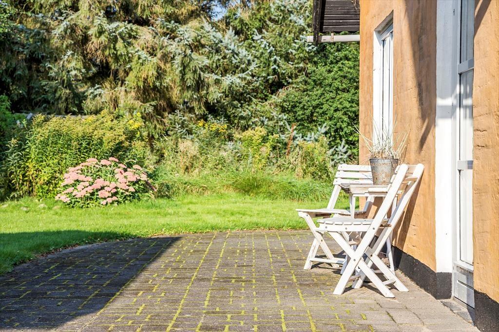Sommerhuset ligger på en stor grund, der er udlagt som have med græsplæne, hvilket giver masser af plads til både afslapning og leg. De omkringliggende træer skaber en privat og fredfyldt atmosfære, og på terrassen kan du nyde morgenkaffen eller tænde op i grillen til en hyggelig middag under åben himmel. Haven er ideel for børn, der kan lege frit, mens de voksne finder ro på terrassen med en god bog eller bare nyder den friske luft.