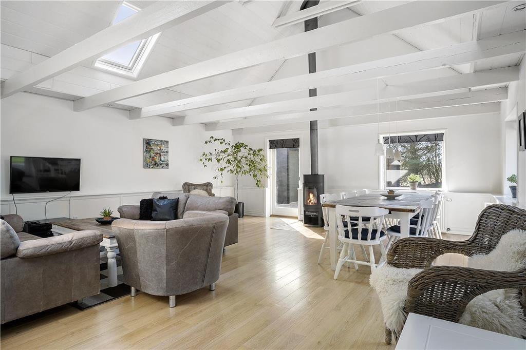 Når du træder indenfor, mødes du af en lys og indbydende indretning, der straks giver en følelse af hjemlig hygge. Stuen er rummelig og har komfortable møbler, hvor hele familien kan samles til en afslappende aften med en god film eller brætspil. Det åbne køkken ligger i forbindelse med spisepladsen og gør det nemt at tilberede måltider, mens samtalen flyder frit. Husets soveværelser er rolige og behagelige, perfekte til en god nats søvn efter en dag fuld af oplevelser.