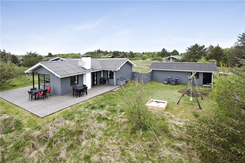 De skønne udearealer omkring sommerhuset gør det nemt at nyde de lange feriedage under åben himmel. Den store terrasse, der omkranser huset, giver rig mulighed for at finde både sol og skygge i løbet af dagen. Havemøblerne indbyder til afslapning med en kop kaffe eller en god bog, mens børnene kan lege frit på naturgrunden. Når aftenen falder på, kan I samles om grillen og nyde et lækkert måltid under den åbne himmel. Naturgrunden byder på fred og ro, og de omkringliggende træer skaber en hyggelig og privat atmosfære.