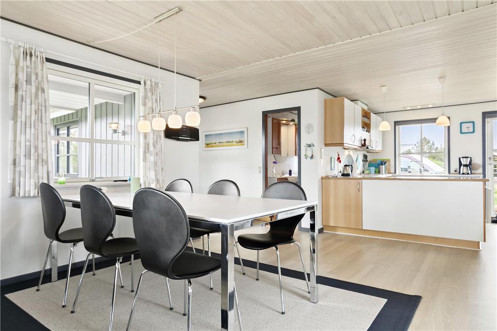 Dette dejlige sommerhus på Klitrosevej 22 byder på en lys og indbydende atmosfære, rolige omgivelser og en fantastisk beliggenhed tæt på både Tversteds byliv og den smukke Vesterhavskyst. Med sine skønne udearealer og store vinduespartier er dette feriehus en sand oase for hele familien.