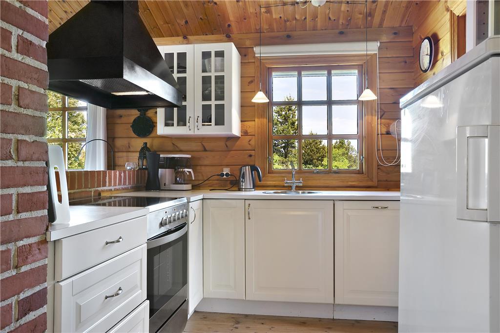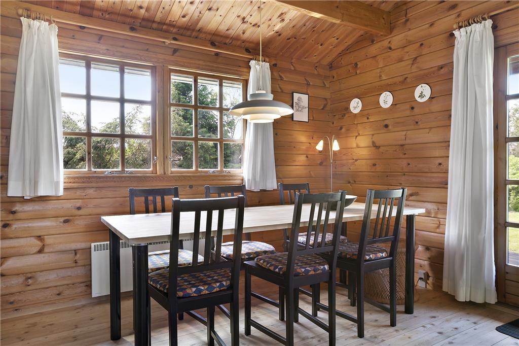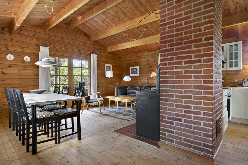 Det charmerende bjælkehus byder dig og dine kære velkommen med en varm og indbydende atmosfære. De smukke trævægge skaber en autentisk og hyggelig stemning, mens vinduerne sørger for et dejligt lysindfald i stuen. Her kan I samles foran brændeovnen til hyggelige aftener med spil og snak eller nyde en film i sofaen. Køkkenet ligger i åben forbindelse med stuen, så der er rig mulighed for samvær, mens der forberedes lækre måltider. Soveværelserne emmer af ro og komfort og giver en perfekt ramme for en god nats søvn.