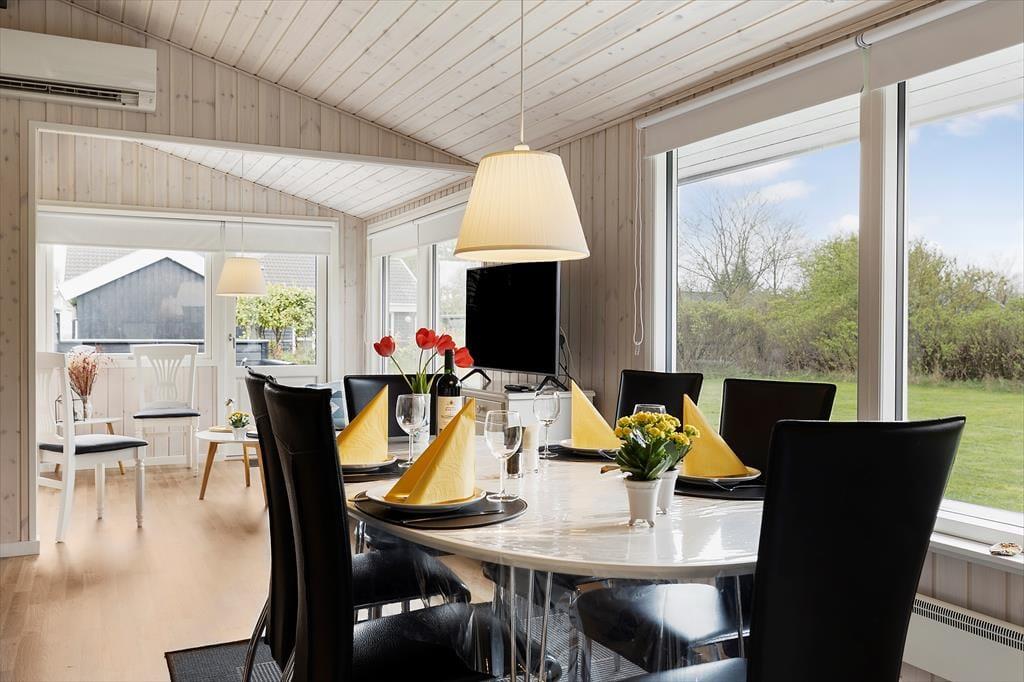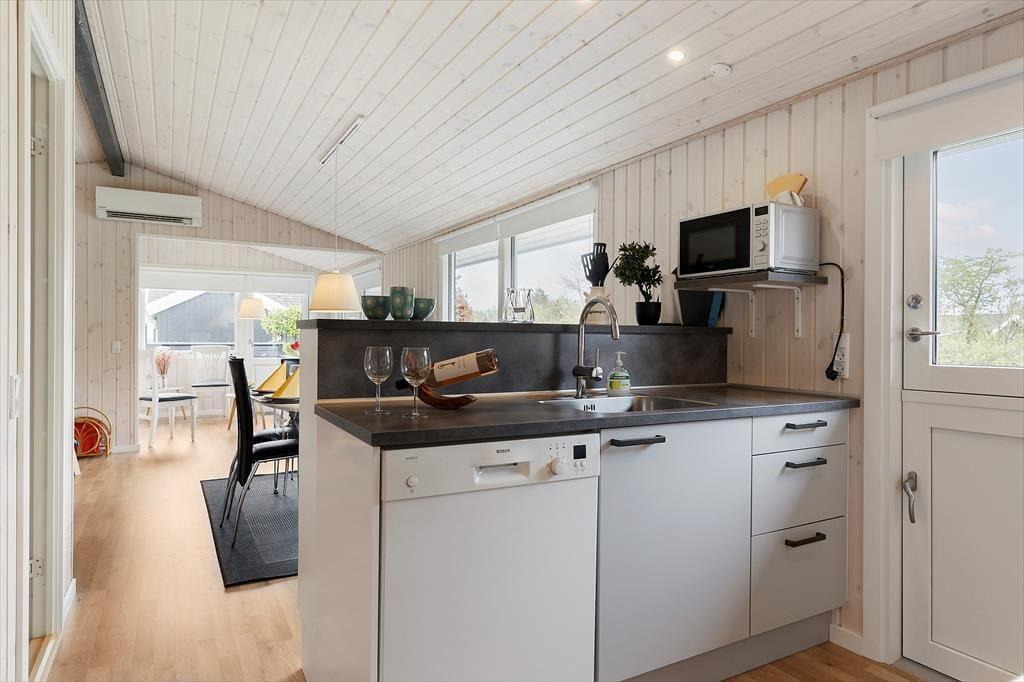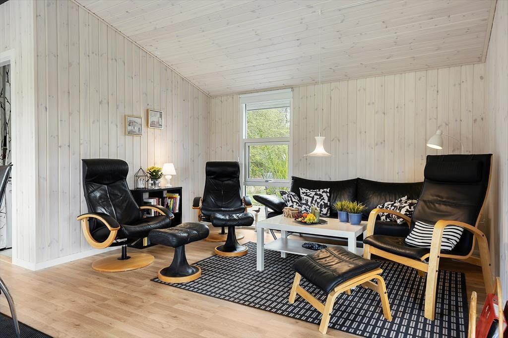 ndenfor møder du en hyggelig og indbydende indretning, der straks skaber en følelse af hjemlig hygge. De lyse rum og gennemtænkte detaljer giver huset en behagelig atmosfære. Stuen er et naturligt samlingspunkt, hvor familien kan nyde aftener med spil og hygge foran fjernsynet eller blot slappe af efter en dag fuld af oplevelser. Køkkenet ligger i praktisk forlængelse af stuen og er udstyret til at gøre madlavningen til en leg. Med soveværelser, der indbyder til ro og afslapning, er dette et sted, hvor alle kan finde sig til rette.