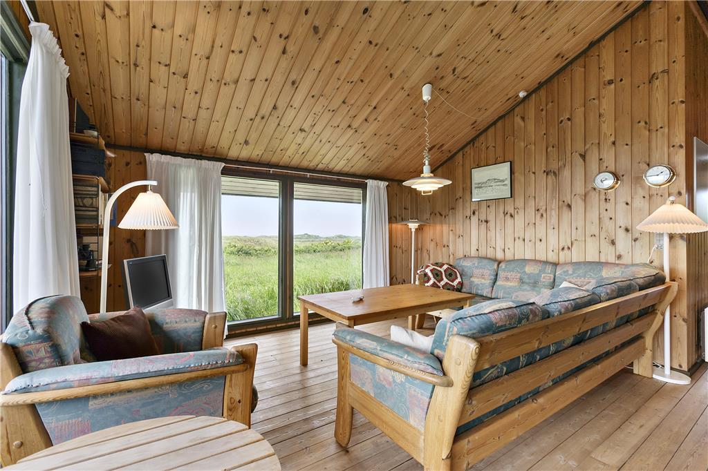 Indenfor i sommerhuset bliver du mødt af en lys og imødekommende indretning, der straks får dig til at føle dig hjemme. De store vinduespartier giver et fantastisk lysindfald og sørger for, at du kan nyde udsigten til Vesterhavet, selv når du er indenfor. Stuen er indrettet med komfortable møbler, hvor du kan slappe af med en god bog, en kop kaffe eller en spændende film på tv’et. Det åbne køkken er funktionelt og skaber en perfekt ramme for hyggelige madlavningsstunder. Soveværelserne inviterer til lange, rolige morgener, hvor du kan vågne op til lyden af bølgerne i baggrunden.