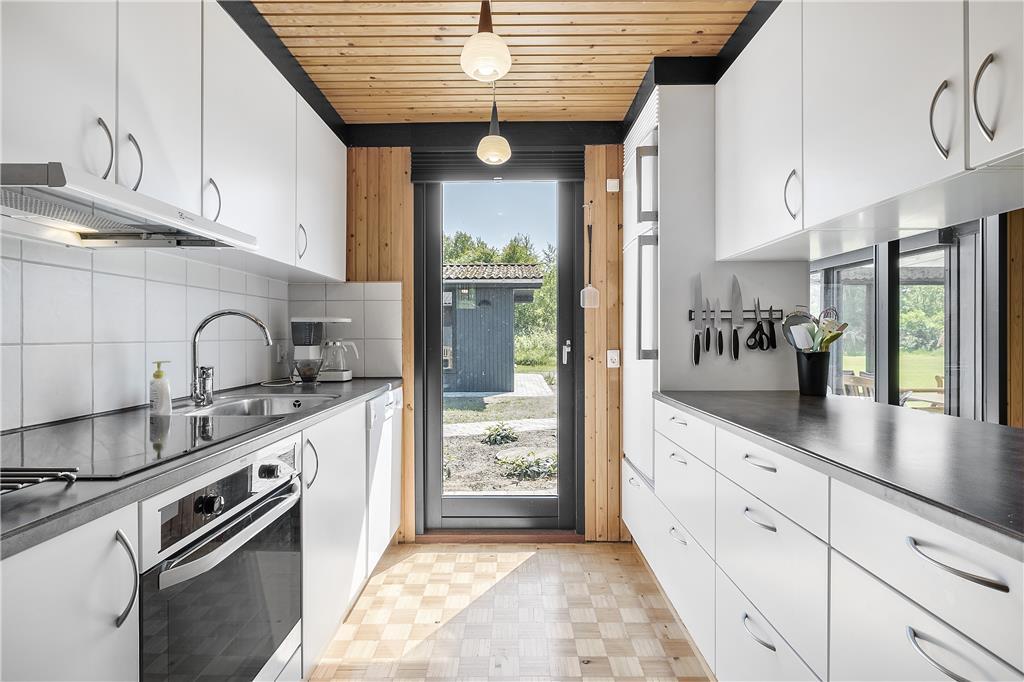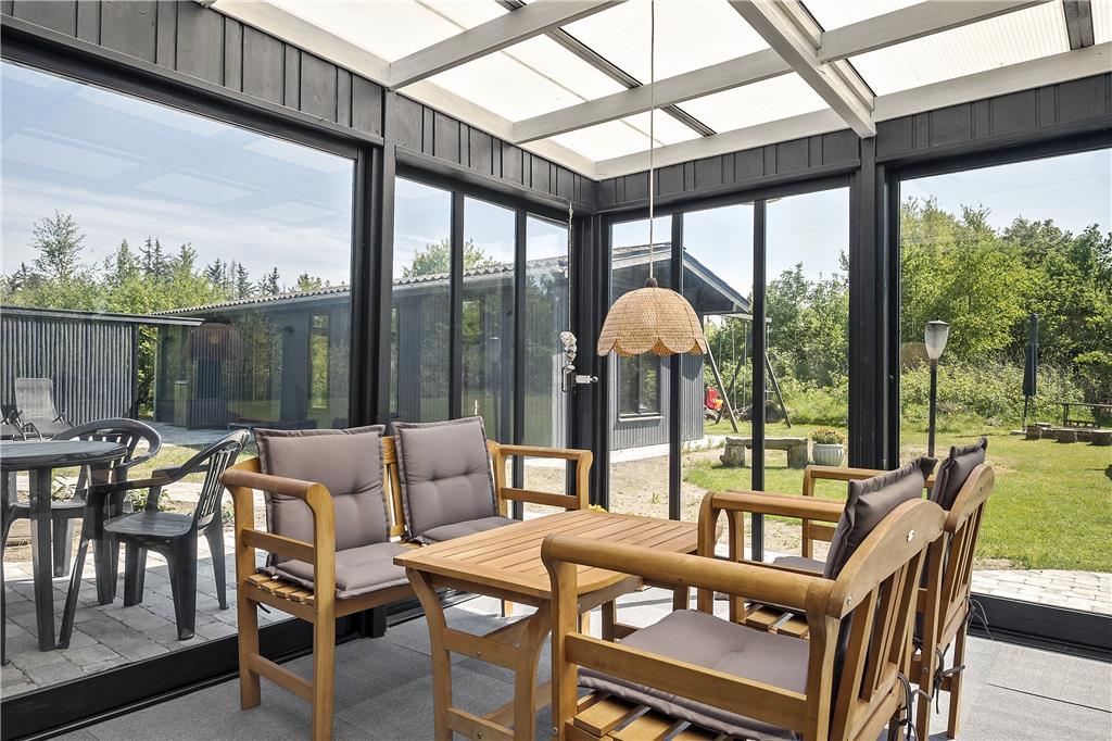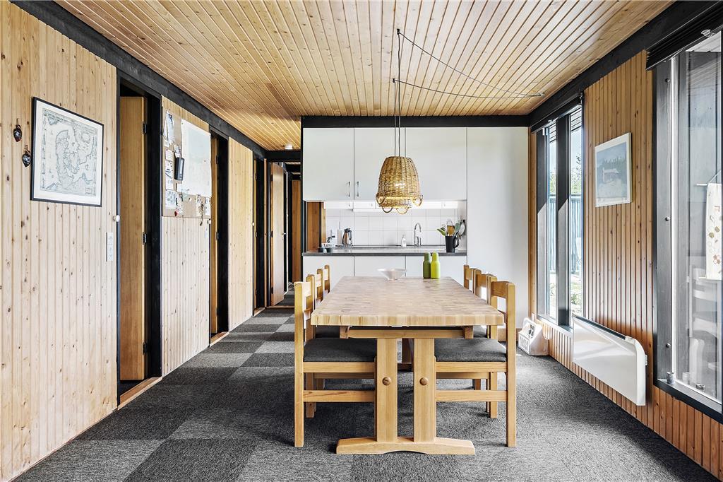Indenfor i sommerhuset bliver du mødt af en lys og indbydende atmosfære, hvor store vinduespartier sørger for, at dagslyset strømmer ind og skaber en varm og hyggelig stemning. Stuen er rummelig og inviterer til afslapning med en god bog eller en film på sofaen, mens køkken-alrummet danner rammen om hyggelige måltider og fælles madlavning. De komfortable soveværelser gør det let at vågne op til feriedage fyldt med spændende oplevelser, og med et separat anneks kan du også tilbyde familiens yngste eller mest aktive medlemmer deres eget lille fristed fyldt med underholdning.