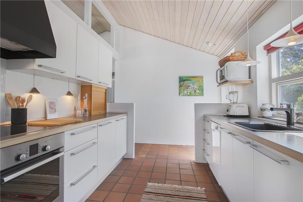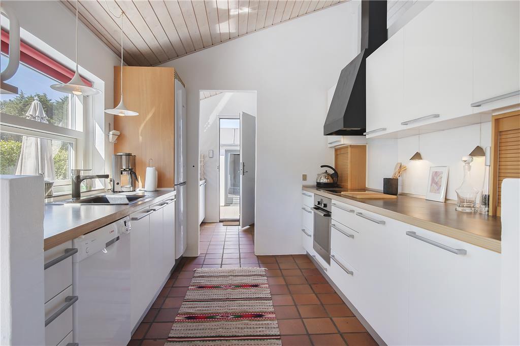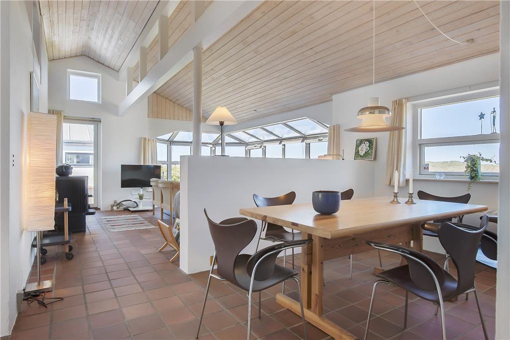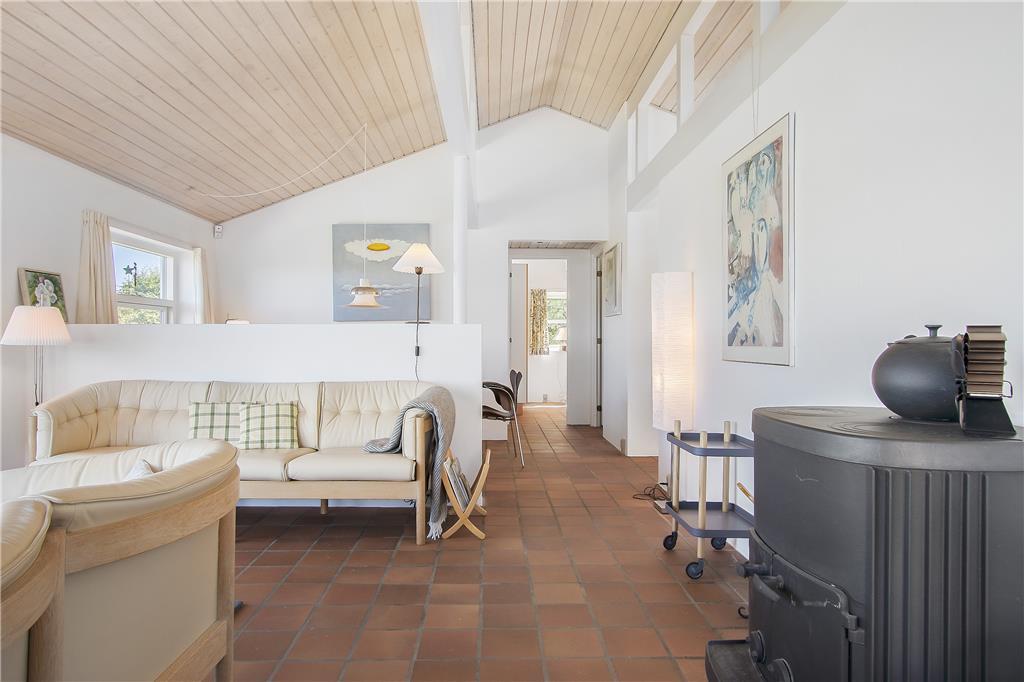 Når du træder indenfor i dette charmerende sommerhus, bliver du mødt af en varm og indbydende atmosfære. Det centrale opholdsrum med sin brændeovn skaber en hyggelig ramme om feriedagene, hvor I kan samles til brætspil, en god bog eller en aften med film og varme drikke. De store vinduer inviterer det omkringliggende klitlandskab helt ind i stuen, så du altid er tæt på naturen, selv når du er indendørs. Køkkenet ligger i åben forbindelse med stuen og gør det nemt at lave mad, mens familien hygger sig i nærheden. Husets soveværelser er lyse og behagelige og giver ro og komfort efter en dag fyldt med oplevelser.