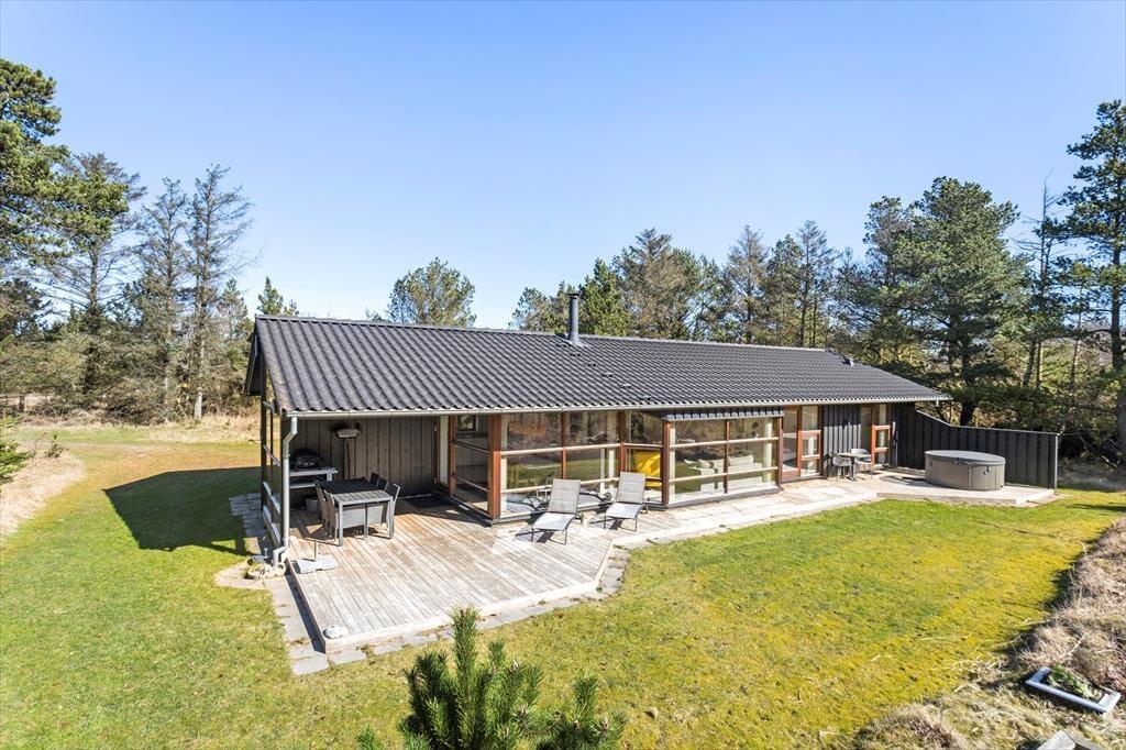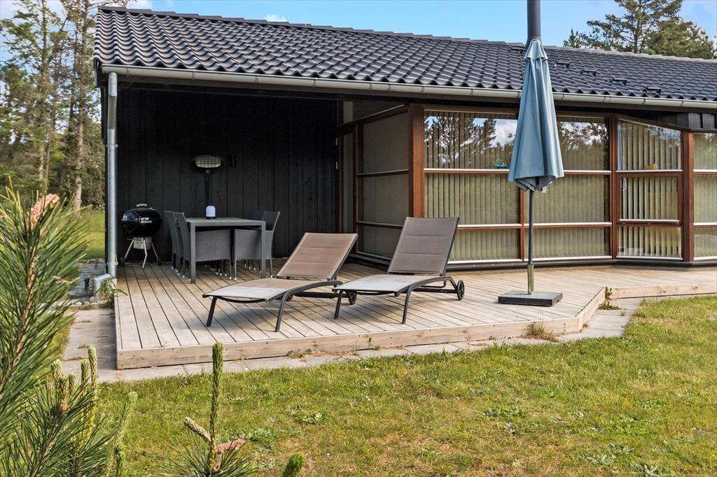 Terrassen er en af sommerhusets store forcer. Her kan du tilbringe mange afslappende timer med en god bog, en kold forfriskning eller et hyggeligt grillmåltid i selskab med dine nærmeste. Havemøblerne indbyder til lange, dovne sommerdage, hvor du blot kan læne dig tilbage og lade solen varme din hud. Skulle en let brise fra Vesterhavet give dig lyst til en frisk gåtur, er der ikke langt til stranden, hvor du kan dyppe fødderne i vandkanten eller tage en svømmetur i de brusende bølger. Efter en dag i solen er der ikke noget bedre end at vende tilbage til terrassen, hvor du kan slappe af og nyde aftenen i det fri.