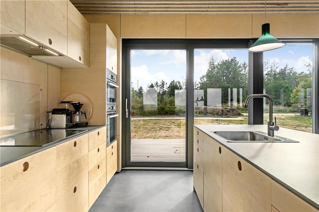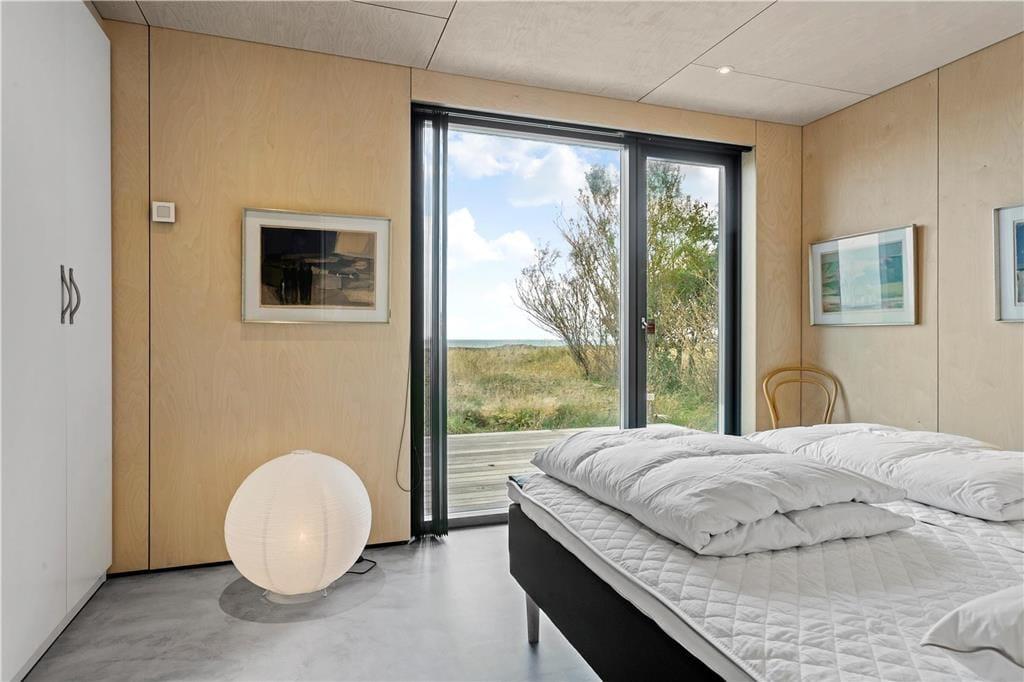 Sommerhusets 192 m2, hvoraf de 35 er overdækkede, er opført i høj kvalitet og med sikker sans for at skabe en flot og samtidig uhøjtidelig. atmosfære. Indretningen domineres af et smukt interiør med gennemgående varme farver og afstemte tekstiler. I kombination med udsigten fra de store vinduer tør vi godt placere dette sommerhus i luksus-kategorien. Køkken, spiseafdeling og stuen med brændeovn hænger sammen i èt stort rum. Huset råder over fire værelser med hver sin dobbeltseng samt to badeværelser. Indretningen af værelser og badeværelser er fordelt så man sagtens kan være to familier eller flere par i huset sammen uden problemer. Begge badeværelser har flotte brusekabiner og rigtig god plads. Huset er udstyret med gulvvarme i alle rum. Med den totale havudsigt og eventuel ild i brændeovnen kan roen virkelig få lov at sænke sig. Her fra kan man nyde solen og udsigten direkte fra sofaen. Da huset har installeret gratis og trådløst internet anbefaler vi at I også medbringer tablets eller pc. Bæredygtighed præger huset med solceller og luft/vand varmepumpe kombineret et lavt energiforbrug pga 3 lags termoruder og højisolering. Der er anvendt træ af typen ”superwood” (modsat imprægneret træ), som er nordisk gran fra bæredygtigt skovbrug i Skandinavien. Spildevand ledes til det offentlige kloaksystem.Lejes huset i fyringssæsonen ankommer de til et opvarmet hovedhus (udlejer bærer udgiften), og elektricitet, der bruges mens solen skinner, er gratis.