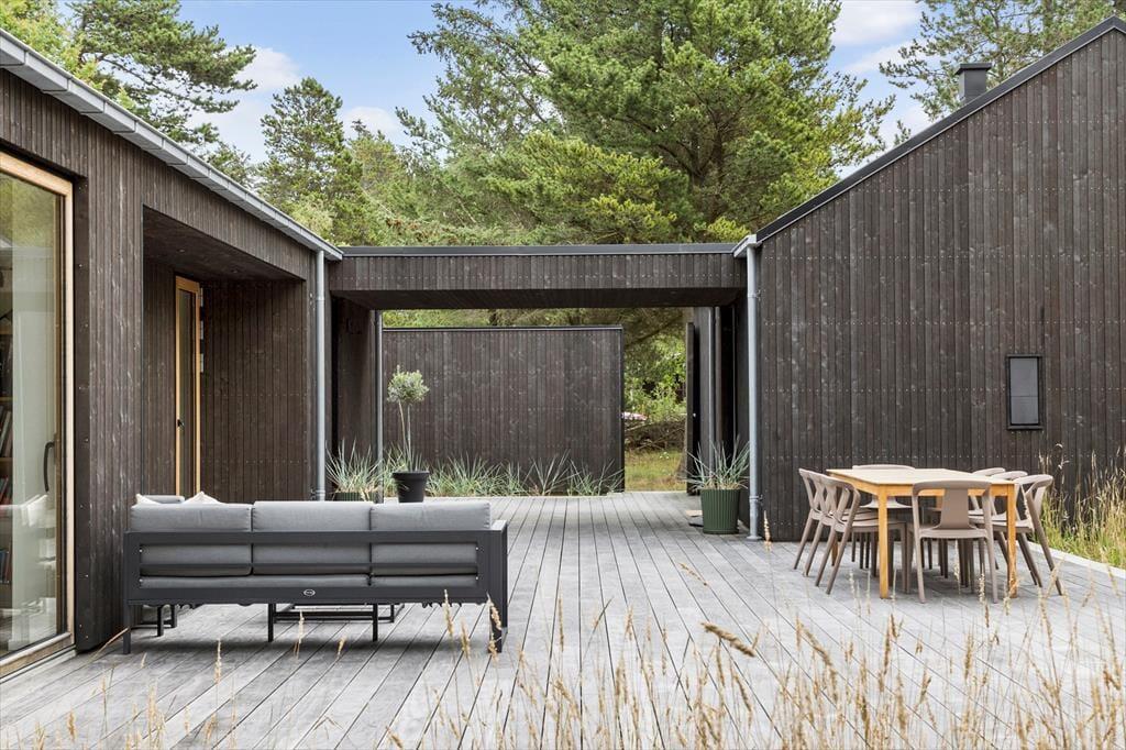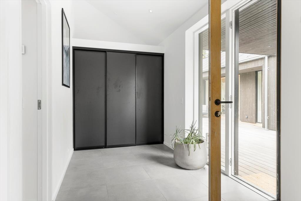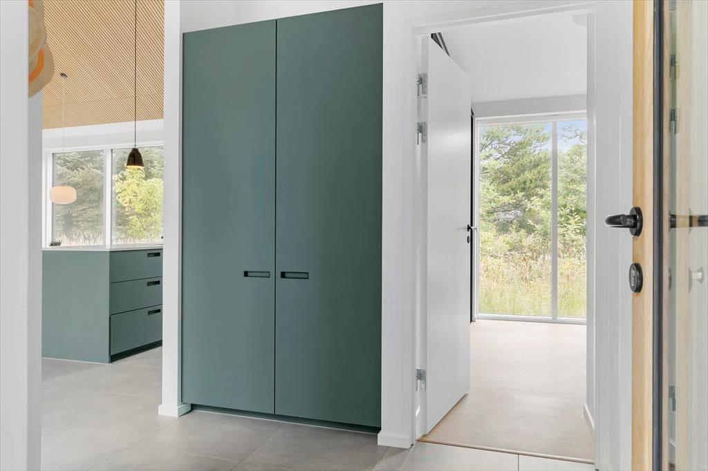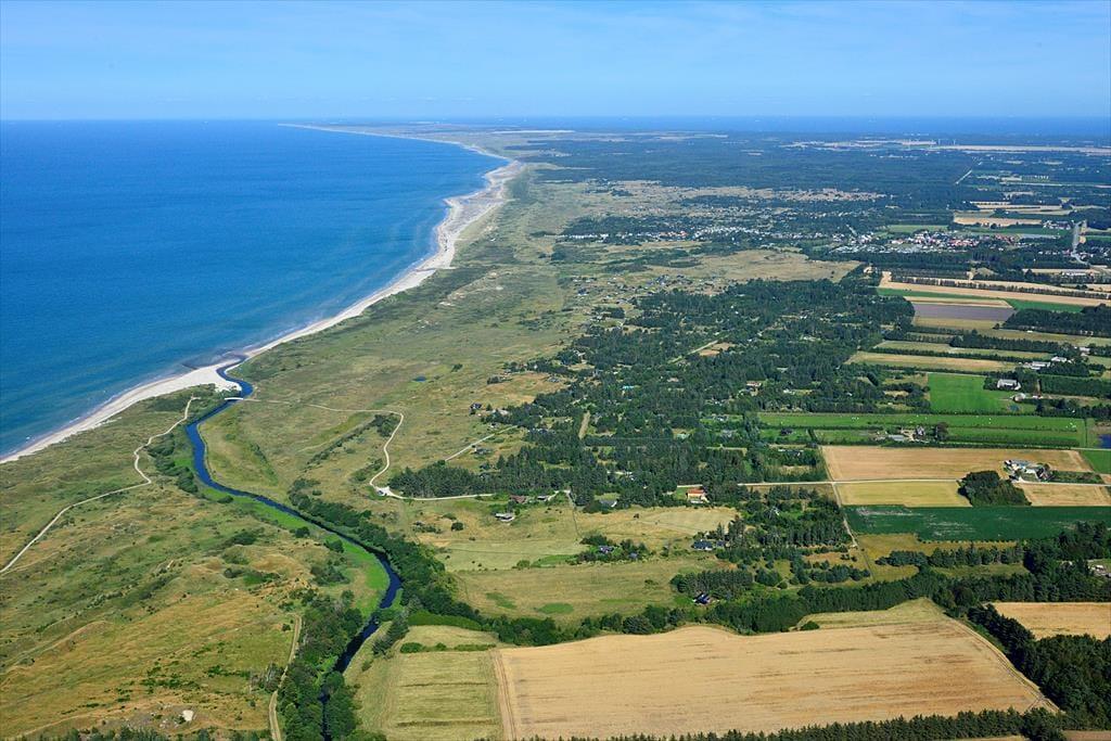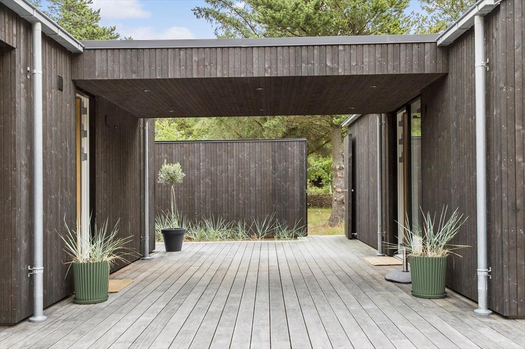 Udenfor venter en stor naturgrund, som skaber et dejligt privat rum, hvor du kan slappe af og nyde roen. Den delvist overdækkede terrasse er ideel til at spise udendørs, nyde morgenkaffen eller slappe af med en god bog i solskinnet. For de mere aktive er der masser af plads på græsplænen, og de naturskønne omgivelser indbyder til en tur langs stierne i området. Den store naturgrund skaber en følelse af frihed og fred, og det er lige så nemt at finde sig en stille plet som at samles og hygge sig sammen i haven. Det er let at lade sig friste til en tur til stranden, som ligger kun 500 meter fra døren, eller at bruge tid på at udforske den omkringliggende natur.
