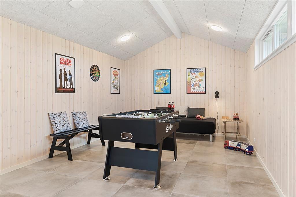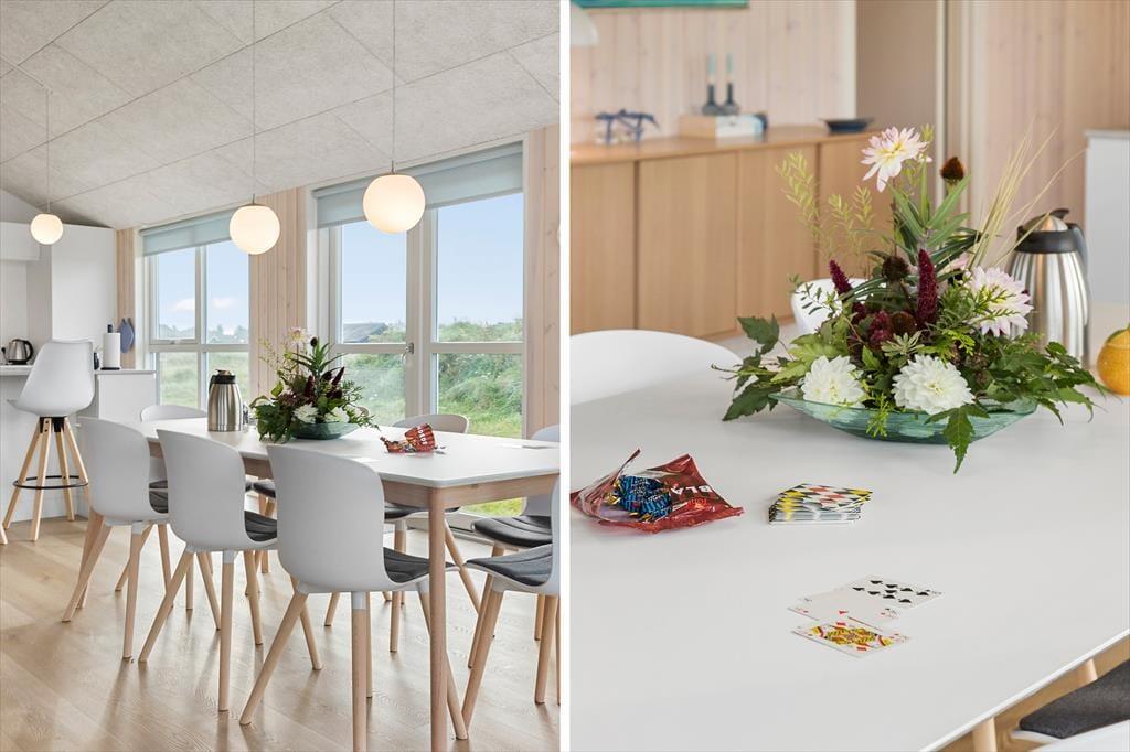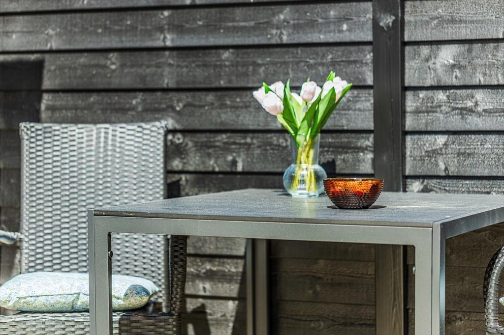 Udelivet er en stor del af ferien her, og huset byder på skønne terrassemiljøer – inklusive en overdækket del, der forlænger udesæsonen og beskytter mod både sol og sommerregn. Naturgrunden har god plads til leg og boldspil, og i det hele taget får du rig mulighed for at nyde både selskabet og stilheden i grønne omgivelser. Nyd morgenkaffen med udsigt til naturarealerne og fuglesang, eller saml familien til aftensmad under åben himmel. Her er plads til både aktivitet og afslapning – og hvis du har børn med, er der god mulighed for at give dem en ferie fyldt med fri leg og frisk luft. Terrassens hyggelige kroge inviterer til lange sommeraftener med tæpper, lanterner og snak i dæmpet belysning.