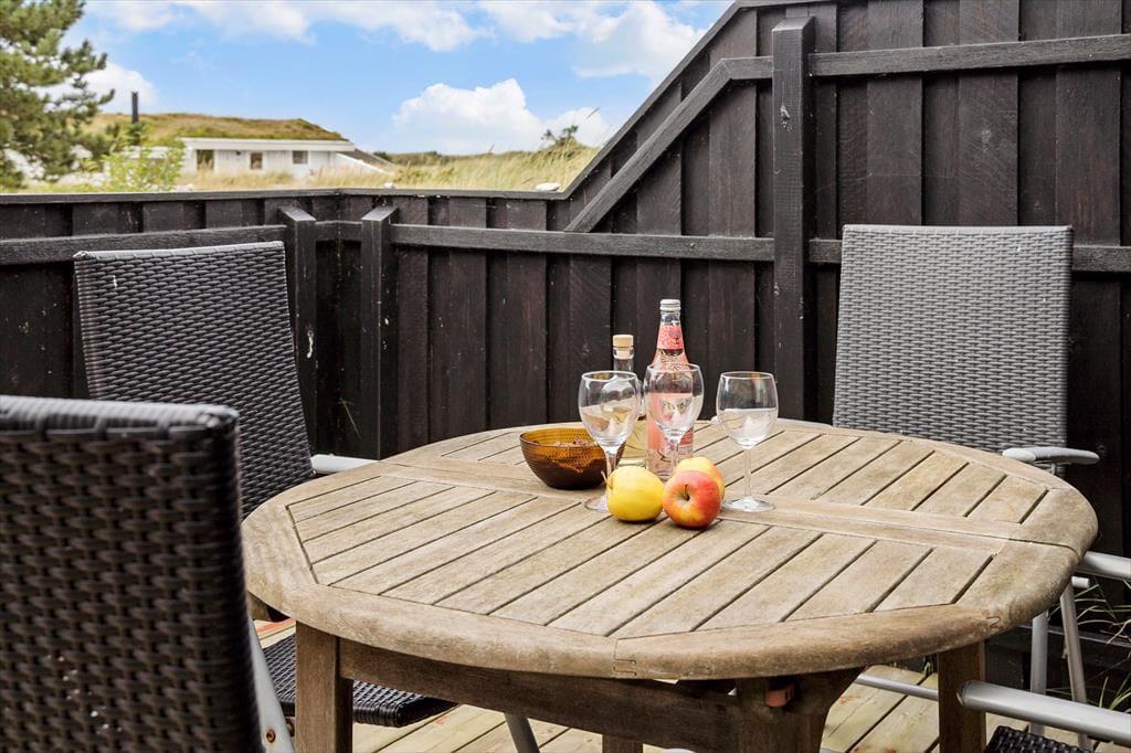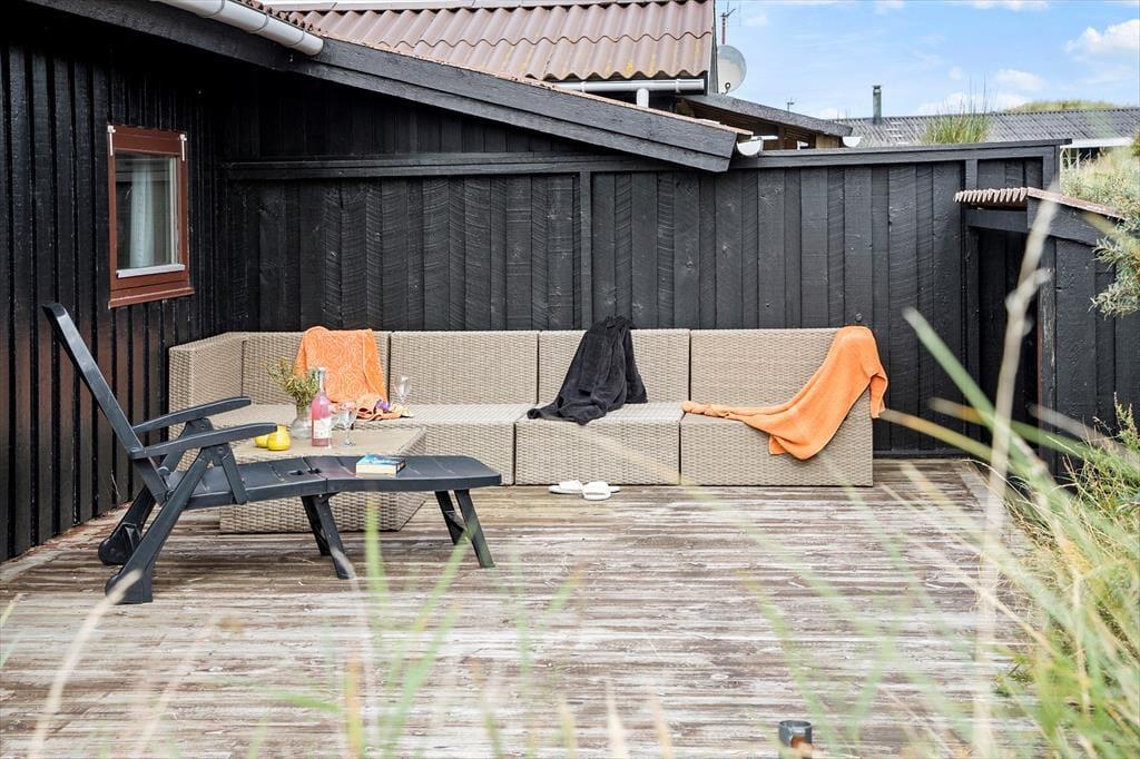 Udenfor venter flere skønne terrasseområder, hvor du kan finde både sol og læ i løbet af dagen. Her er det oplagt at starte morgenen med friskbrygget kaffe, mens solen langsomt varmer naturgrunden op, eller afslutte dagen med et glas vin, mens du ser himlen farves af solnedgangen. Naturgrunden er omgivet af klitter, der giver en dejlig, ugeneret fornemmelse, og de rolige omgivelser indbyder til at sætte tempoet ned. Med hund tilladt i huset kan familiens firbenede ven også være med til at udforske de små stier og åbne arealer lige udenfor døren.