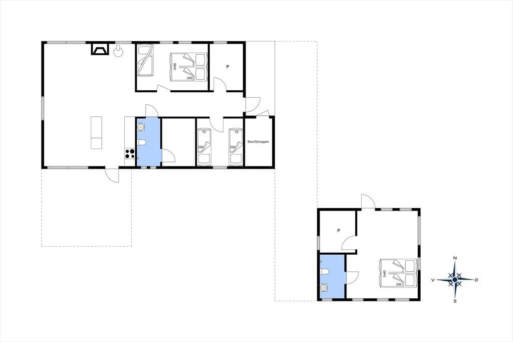 Træsommerhuset og det tilhørende anneks præsenterer sig på helt klassisk vis med mørkegrøn facade og røde vinduesrammer. Også inden døre har det fået lov til at bevare sin autentiske 1970’er-stil, så det emmer af hygge og gode vibrationer – og så er det selvfølgelig blevet vedligeholdt og opdateret med moderne bekvemmeligheder som wi-fi og fladskærms-tv, så du kan følge med i nyhederne og se film, hvis ikke du vil holde en helt skærmfri ferie. Det er også skønt at kunne fordybe sig i en god bog i stuen – med små indlagte pauser, hvor du kan nyde havudsigten eller skæret fra brændeovnen – og brætspil, strikketøj og krydsogtværser passer perfekt ind i setuppet. Et åbent køkken er integreret med stuen, og så er der to soveværelser og et badeværelse med sauna inden døre. Annekset byder på et ekstra soveværelse med eget bad, så alt i alt kan seks personer fint holde ferie sammen.