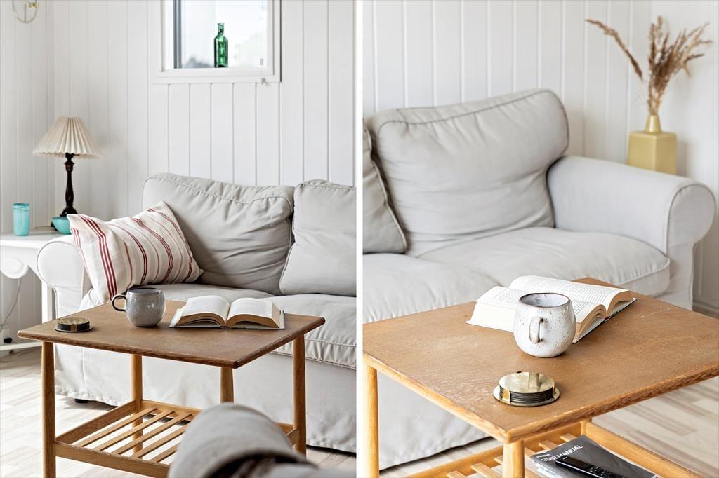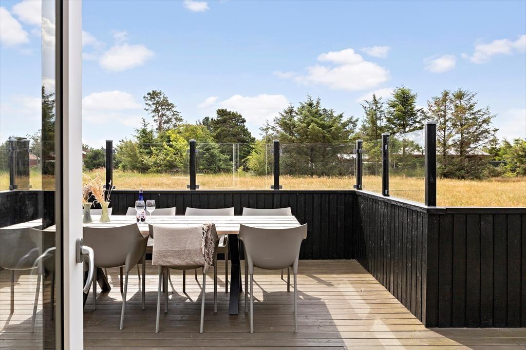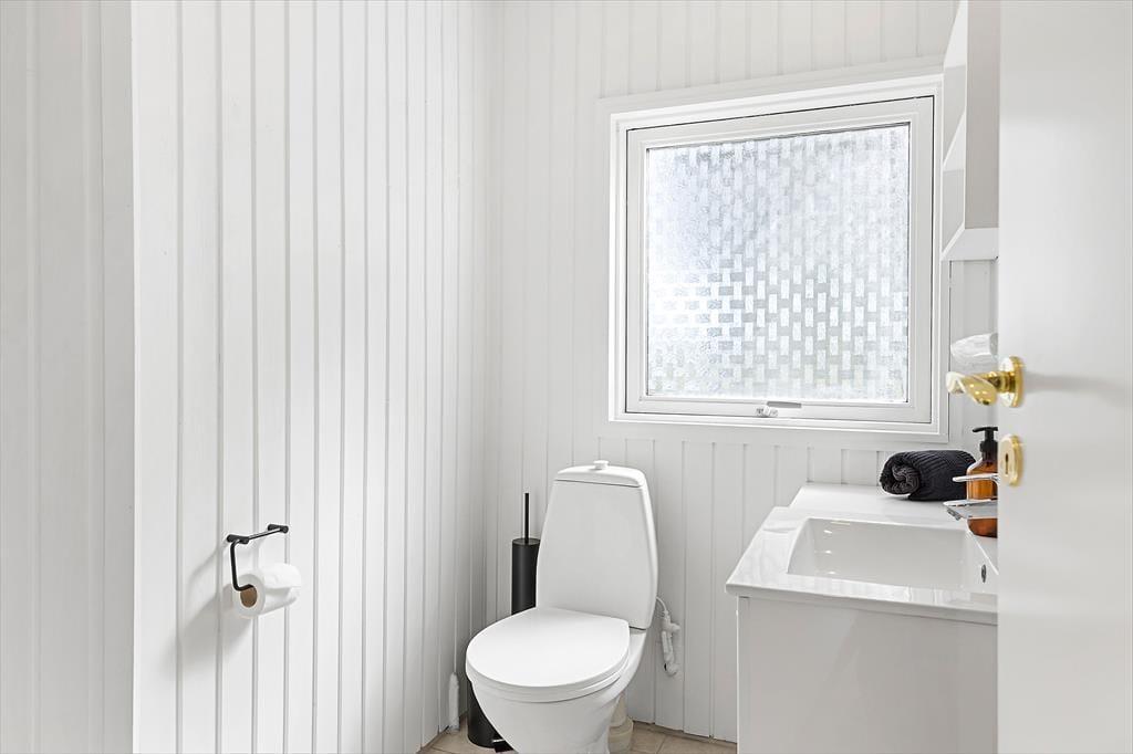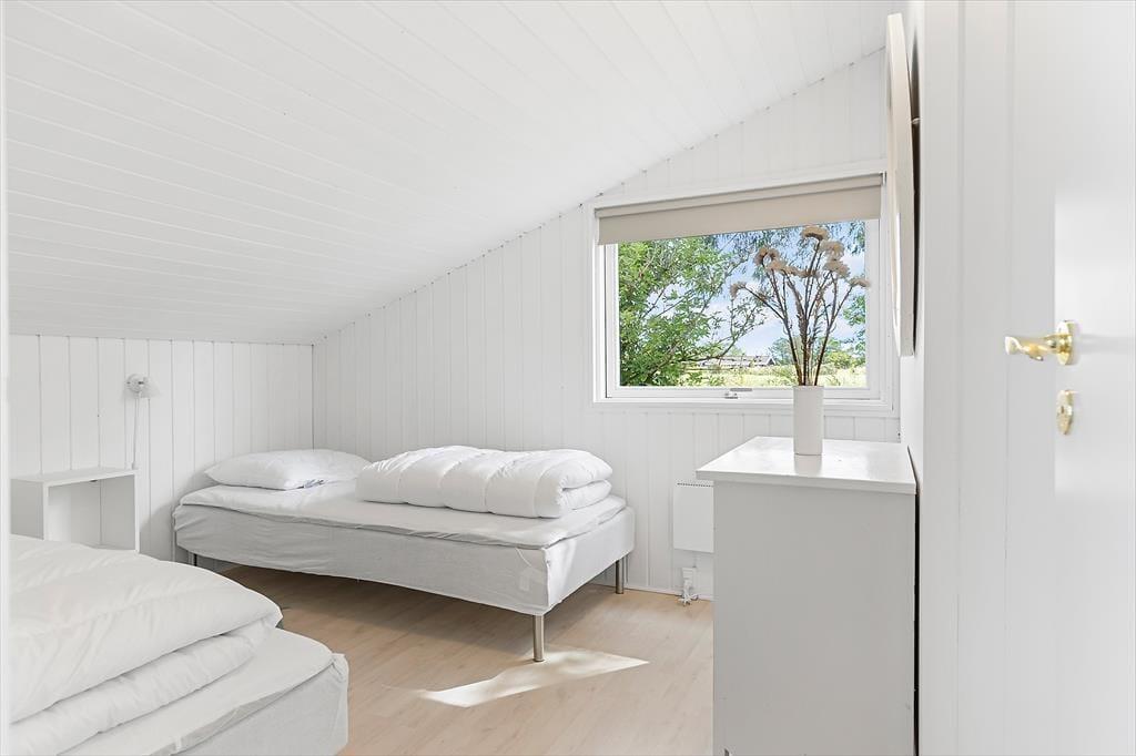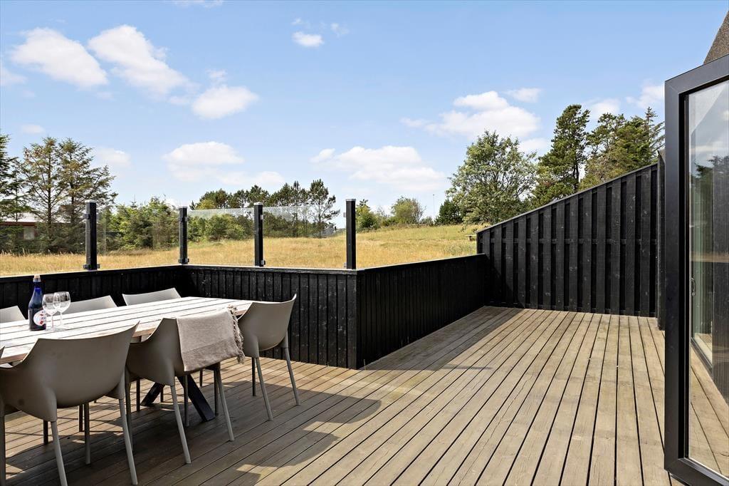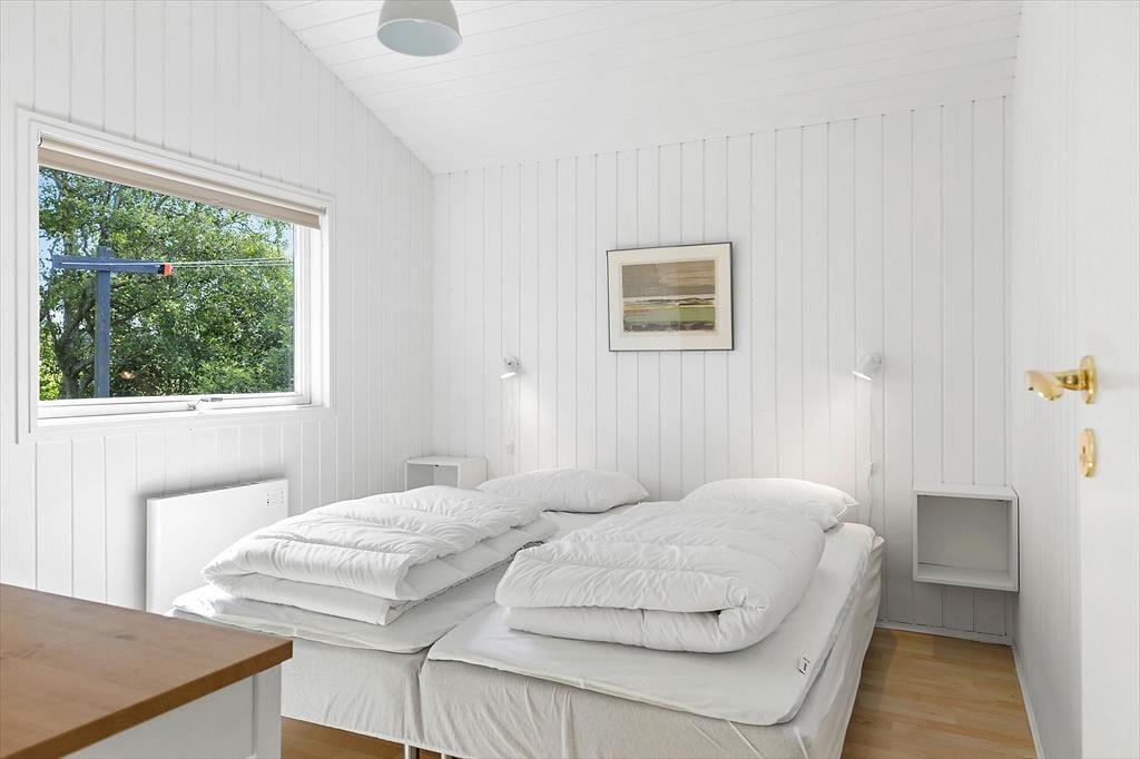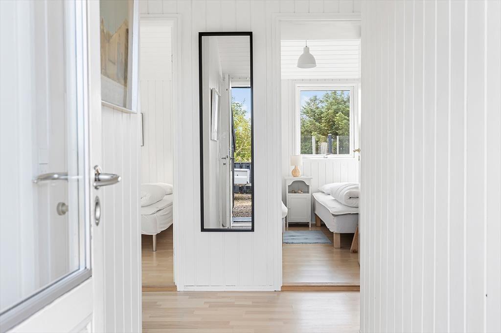 Inde bag sommerhusets mørke facade fremstår alle rum lette og luftige. Ikke bare væggene og de skrå lofter, men også en stor del af interiøret er holdt i lyse farvetoner, og både vinduer og havedøre sørger for, at solen inviteres indenfor fra morgen til aften. Når det er sengetid – eller når du trænger til en pause på langs med en spændende bog – kan du trække dig tilbage på et af sommerhusets tre gode soveværelser. De fleste af døgnets vågne timer kommer nok ellers til at udspille sig i stuen, der er udstyret med en brændeovn og har åben forbindelse til et veludstyret tosidet køkken.