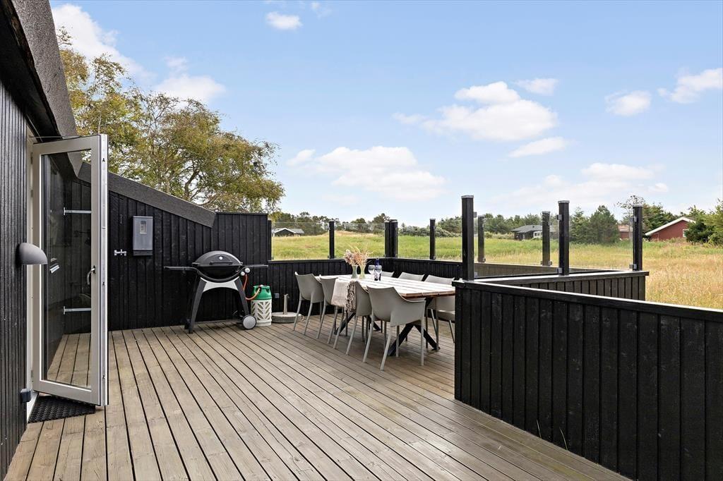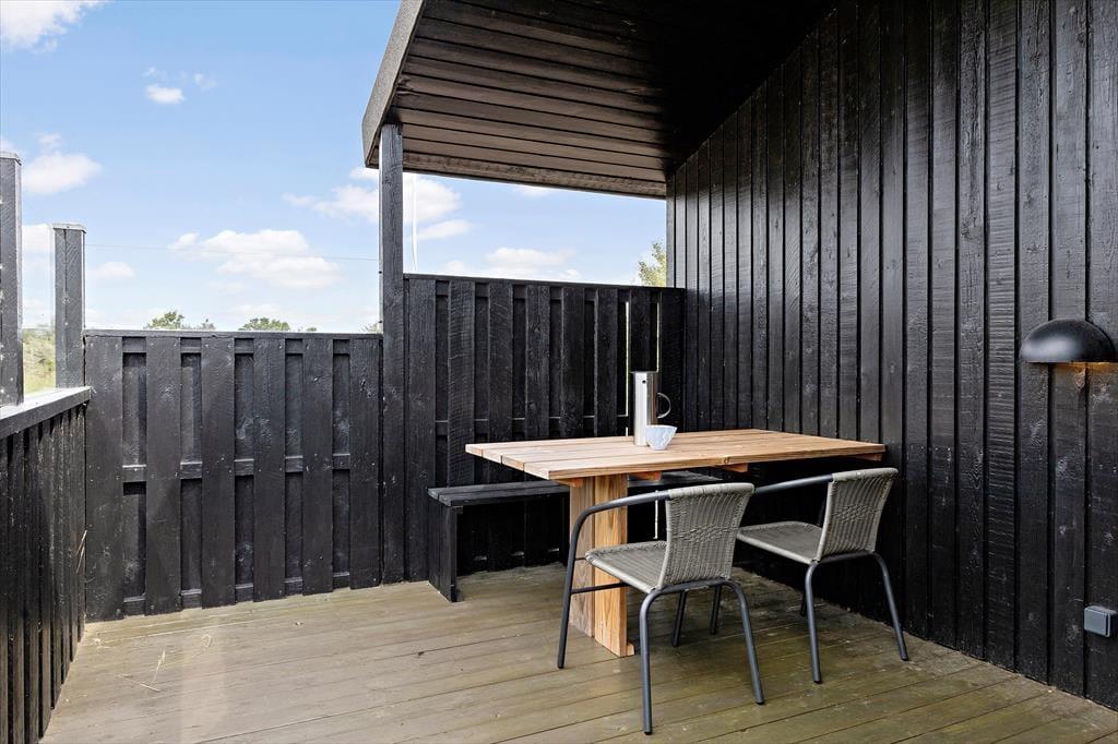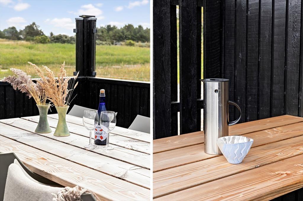Feriens hyggestunder kan også sagtens foregå ude i det fri, hvor du har flere dejlige terrasseområder at vælge imellem. Der er en lille åben morgenterrasse på østsiden af huset og en delvist overdækket vestterrasse, men det er nu nok sydterrassen, der bliver førstevalget, for den er stor, dejligt solrig og godt afskærmet – og så har den endda en køn udsigt til den fine sø, der breder sig mellem områdets sommerhuse. Sommerhusets gasgrill gør det nemt at tilberede aftensmaden ude i det fri, hvis ikke du tager familien under armen og smutter ind til Tversteds bymidte for at spise på restaurant.