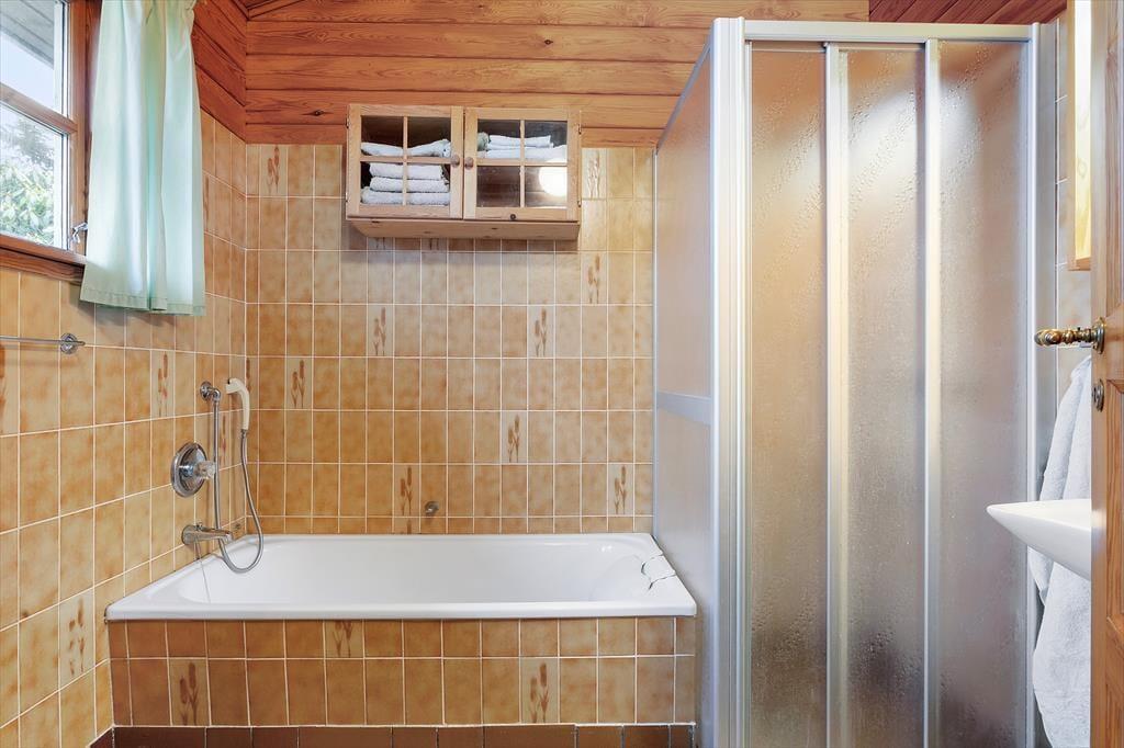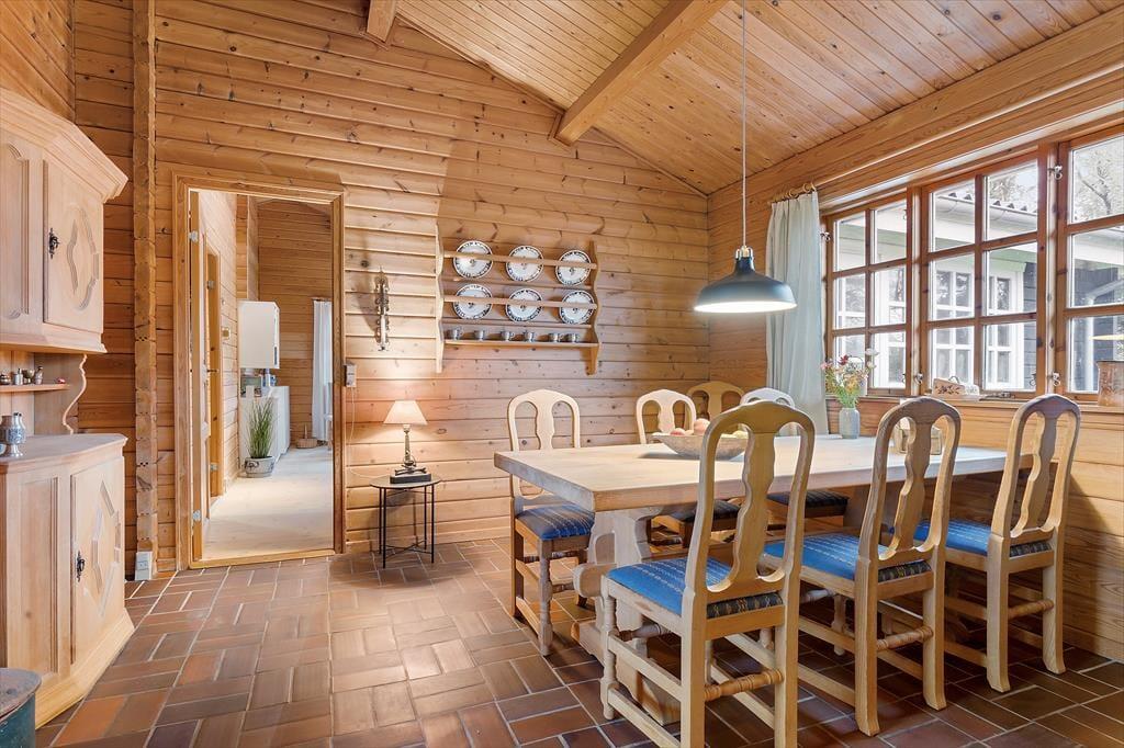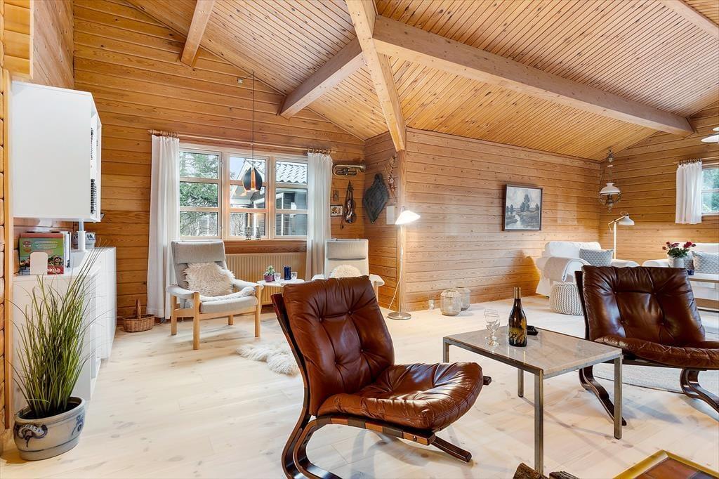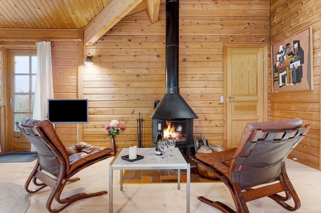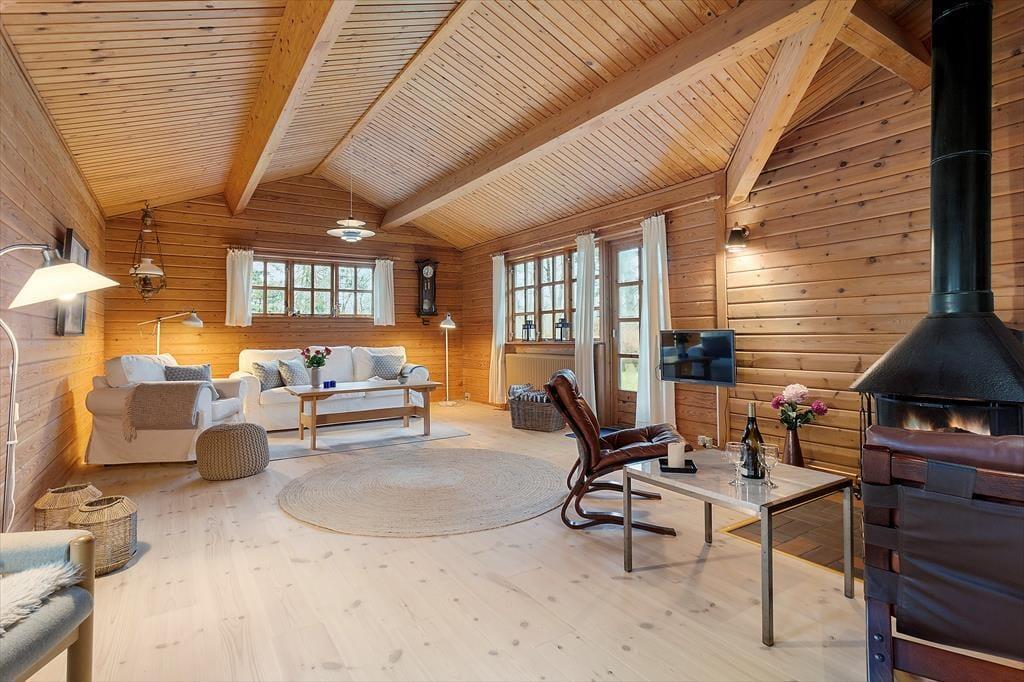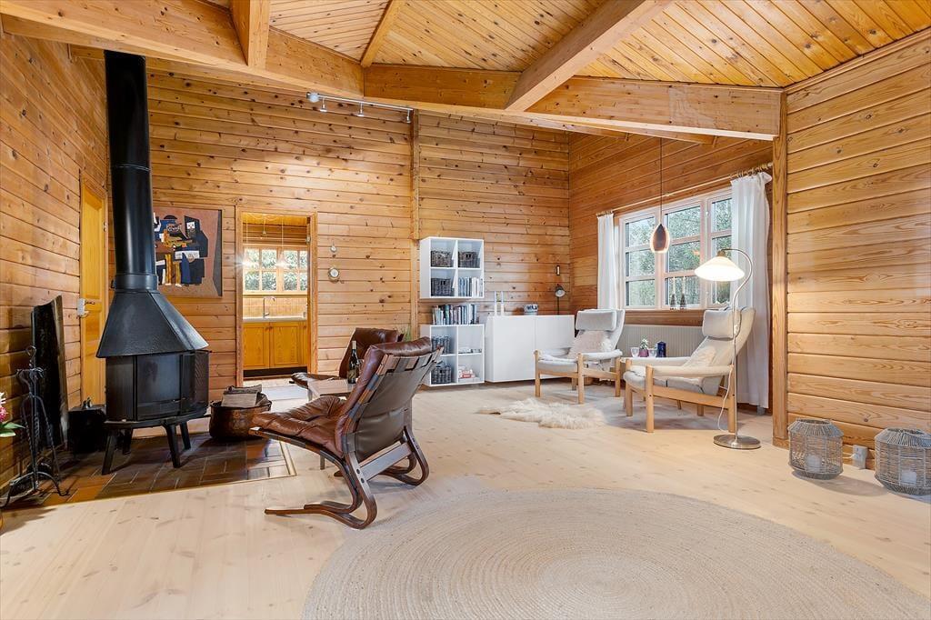 Indenfor mødes du af en lys og rummelig stue, hvor loftet går til kip og tilføjer en dejlig rumfornemmelse. De store vinduer lukker dagslyset ind og skaber en indbydende atmosfære, hvor du hurtigt føler dig hjemme. Brændeovnen i hjørnet tilføjer varme og hygge, særligt på de kølige aftener, hvor flammerne knitrer, mens du nyder en god bog eller en film i sofaen. Køkkenet ligger separat, men i tæt forbindelse med stuen, så du stadig kan være en del af samtalen, mens du tilbereder et lækkert måltid. Sommerhuset er velholdt og emmer af klassisk sommerhusstemning, hvor man straks føler sig hjemme.