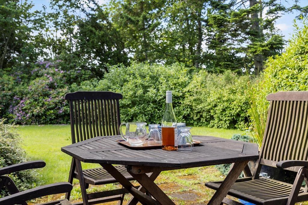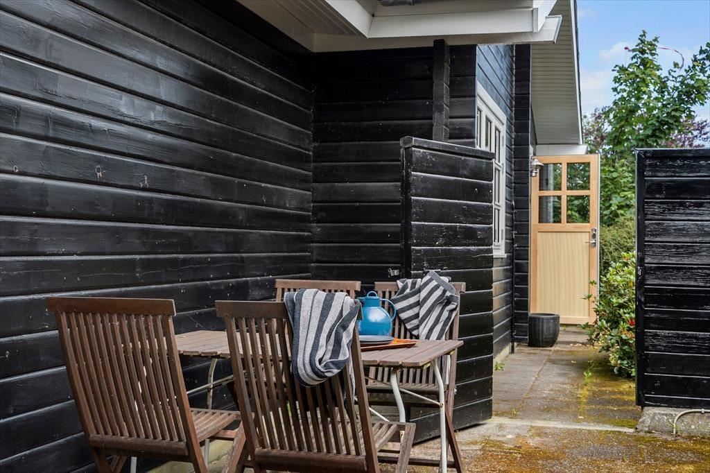 Det skønne uderum omkring sommerhuset er en af dets store kvaliteter. Her er der god plads til at nyde solen, uanset om du vil strække dig ud på en liggestol eller sidde til bords med en kop kaffe og lade tankerne flyde. Den store græsplæne inviterer til leg og boldspil, så hvis du har børn med, er der rig mulighed for at få brændt energi af, inden dagen slutter med en hyggelig grillaften på terrassen. Placeringen for enden af vejen betyder, at du er skærmet fra trafik og forstyrrelser, så du kan nyde ferien i ro og mag.