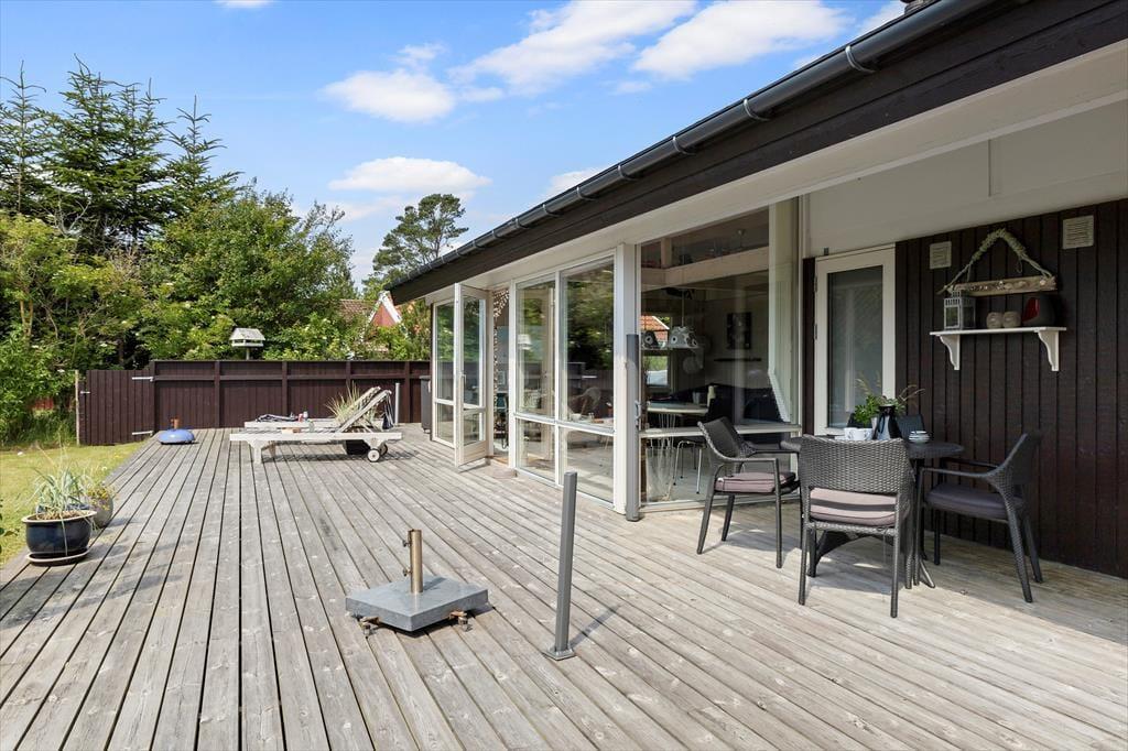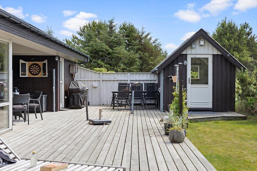 Den lukkede grund omkring sommerhuset giver en særlig tryghed og ro, som man sjældent finder andre steder. Her kan du nyde solen på terrassen eller lade børn og firbenede venner boltre sig på den grønne plæne i fuld frihed. Den hyggelige have er omkranset af træer og buske, der skærmer af mod nysgerrige blikke, og du kan nemt tilbringe lange sommeraftener under åben himmel med grillmad og gode samtaler. Omgivelserne indbyder til udendørs leg, mens fuglene kvidrer i baggrunden, og den friske duft fra skov og strand fylder luften. For naturelskeren er der direkte adgang til flere cykel- og vandreruter, der snor sig gennem Tversteds smukke landskab og gør det let at udforske området på egne præmisser.