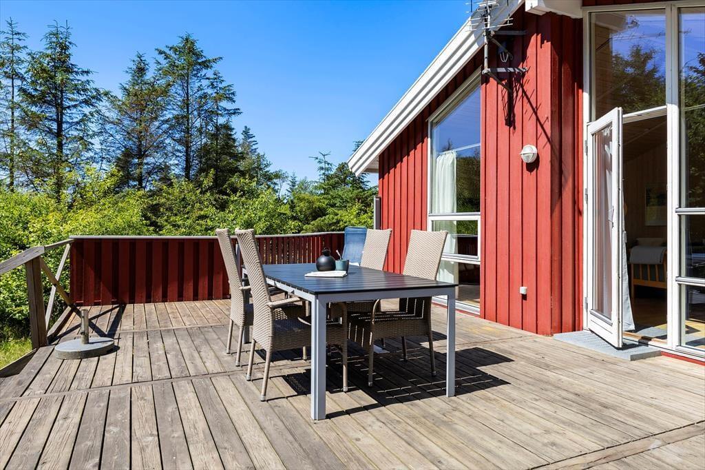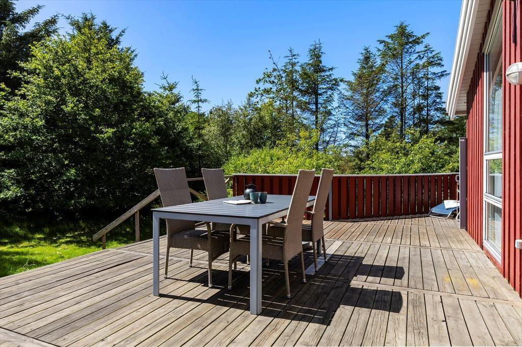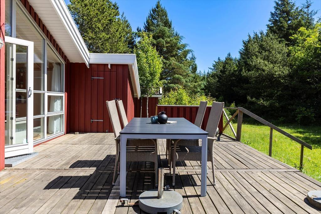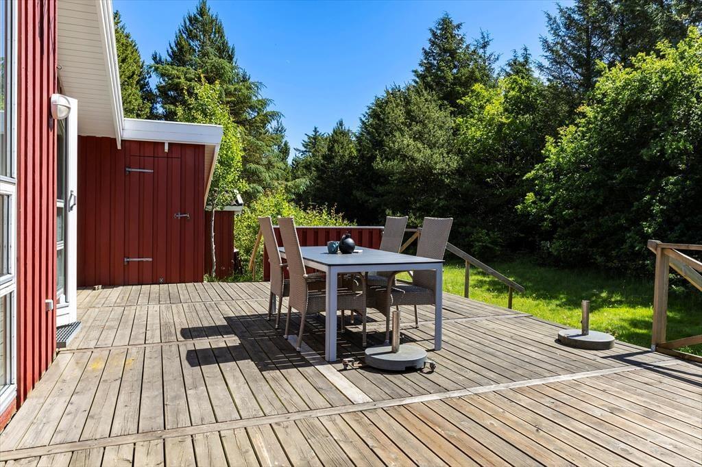 På den store, frodige grund er der masser af plads til at leve ferielivet ud under åben himmel. De høje træer omkring huset giver både læ og privatliv, så du kan læne dig tilbage i en liggestol, mens du nyder fuglenes kvidren eller læser en god bog i skyggen. På terrassen kan du dække op til dagens måltider, grille lækkerier til hele familien eller bare nyde solen i takt med, at dagen langsomt går på hæld. For de mindste er haven en eventyrlegeplads med græs under fødderne og plads til at lege gemmeleg eller bygge huler mellem træerne – og hunden vil uden tvivl også elske at snuse rundt i de grønne omgivelser.