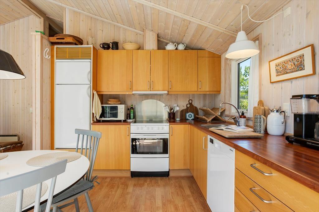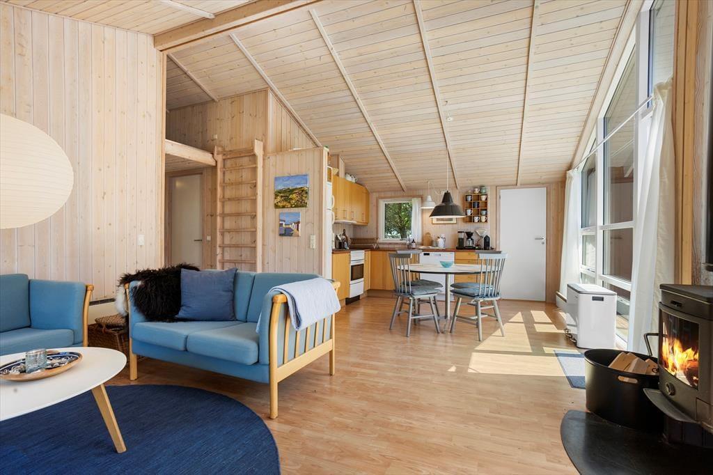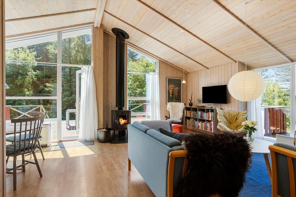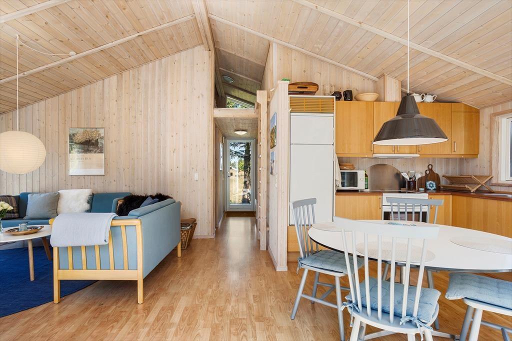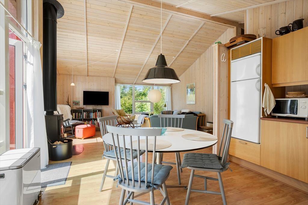 Indenfor i sommerhuset møder du en stemning, som indbyder til at koble helt af og nyde livet i dit eget tempo. Indretningen er enkel og hyggelig i klassisk sommerhusstil med træbeklædte vægge og store vinduer, der slipper lyset ind og giver frit kig til haven udenfor. I stuen kan du samle familien til hyggelige stunder foran brændeovnen eller slå benene op i sofaen efter en dag fyldt med oplevelser i Tversteds naturskønne omgivelser. Køkkenet ligger i åben forbindelse med stuen, så du let kan fylde kaffekopperne op eller trylle lidt lækkert frem, mens snakken går hen over spisebordet. Når mørket falder på, kan du glæde dig til at trække dig tilbage i soveværelserne, der alle indbyder til rolig og uforstyrret nattesøvn.