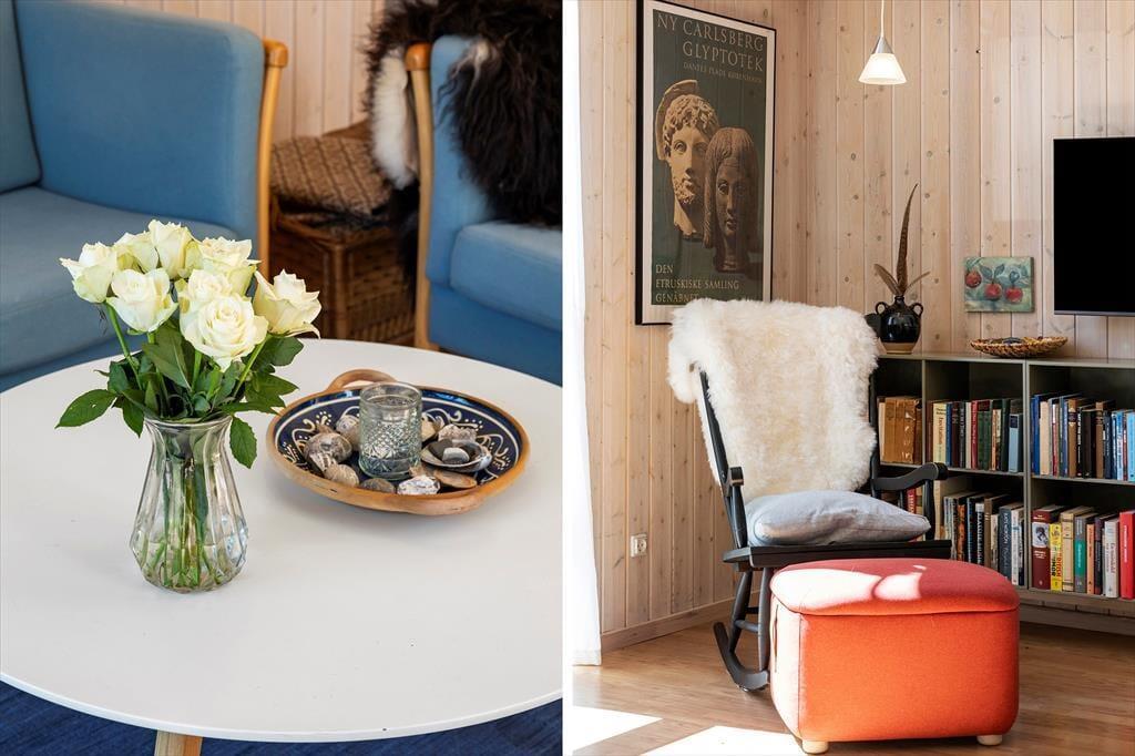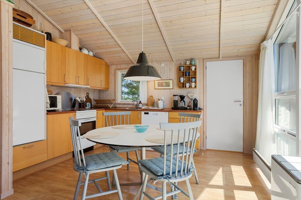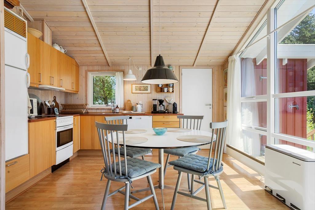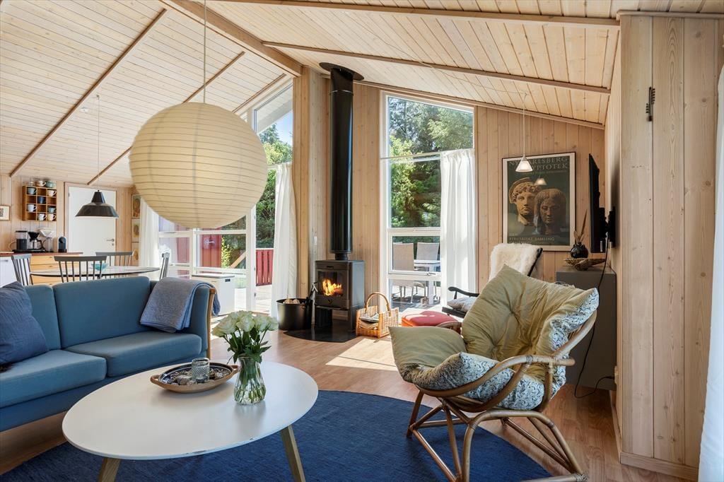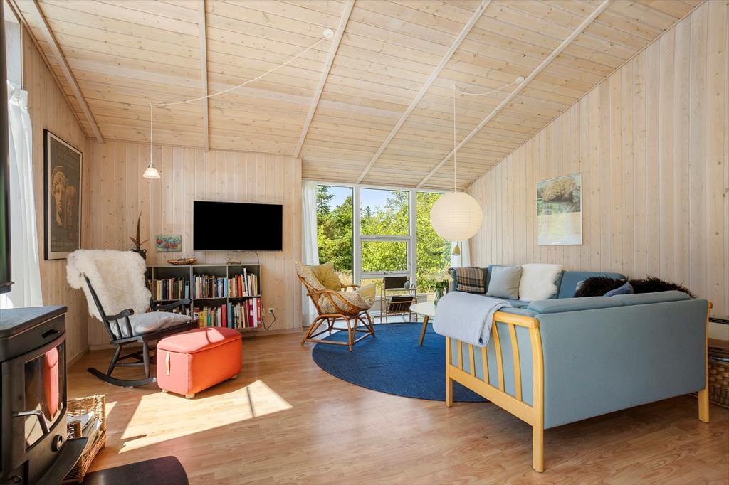 Indenfor i sommerhuset møder du en stemning, som indbyder til at koble helt af og nyde livet i dit eget tempo. Indretningen er enkel og hyggelig i klassisk sommerhusstil med træbeklædte vægge og store vinduer, der slipper lyset ind og giver frit kig til haven udenfor. I stuen kan du samle familien til hyggelige stunder foran brændeovnen eller slå benene op i sofaen efter en dag fyldt med oplevelser i Tversteds naturskønne omgivelser. Køkkenet ligger i åben forbindelse med stuen, så du let kan fylde kaffekopperne op eller trylle lidt lækkert frem, mens snakken går hen over spisebordet. Når mørket falder på, kan du glæde dig til at trække dig tilbage i soveværelserne, der alle indbyder til rolig og uforstyrret nattesøvn.