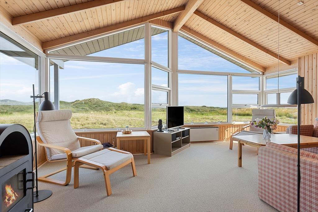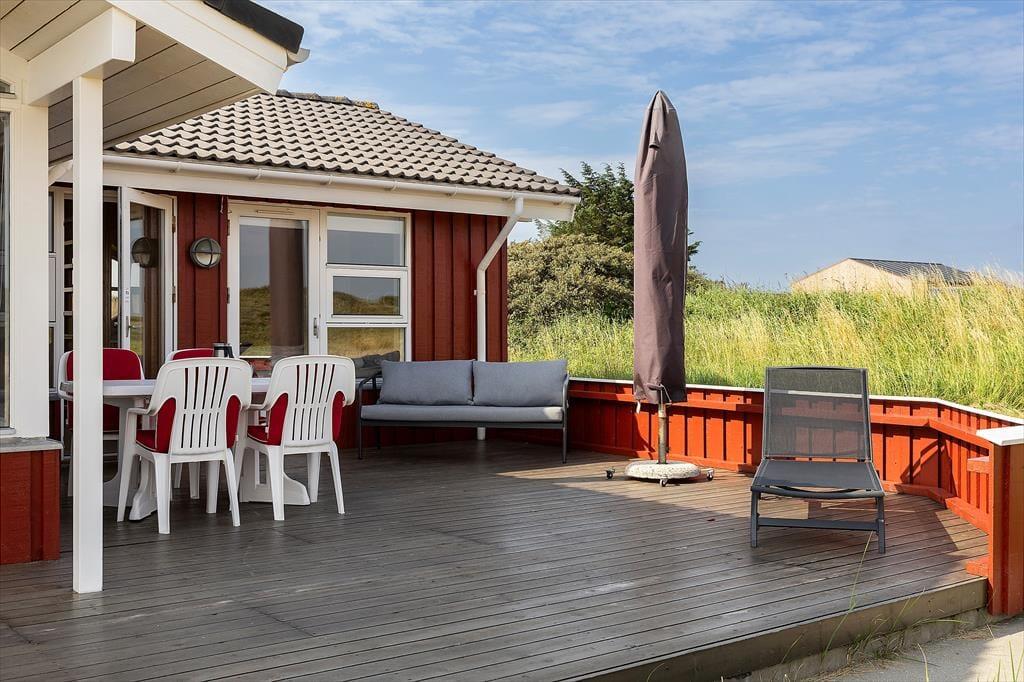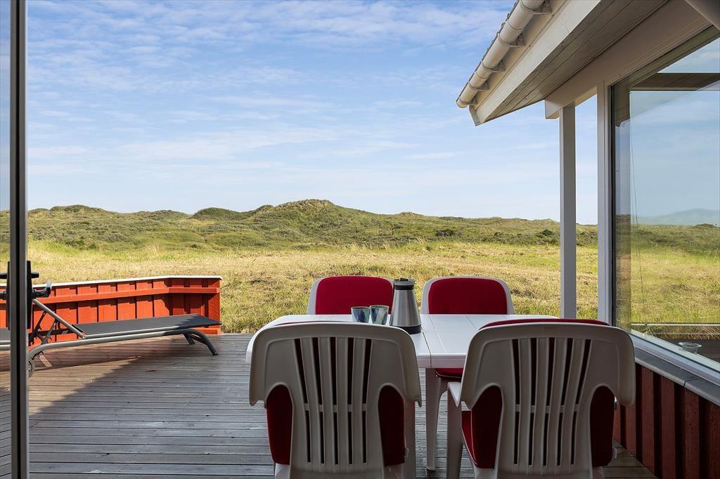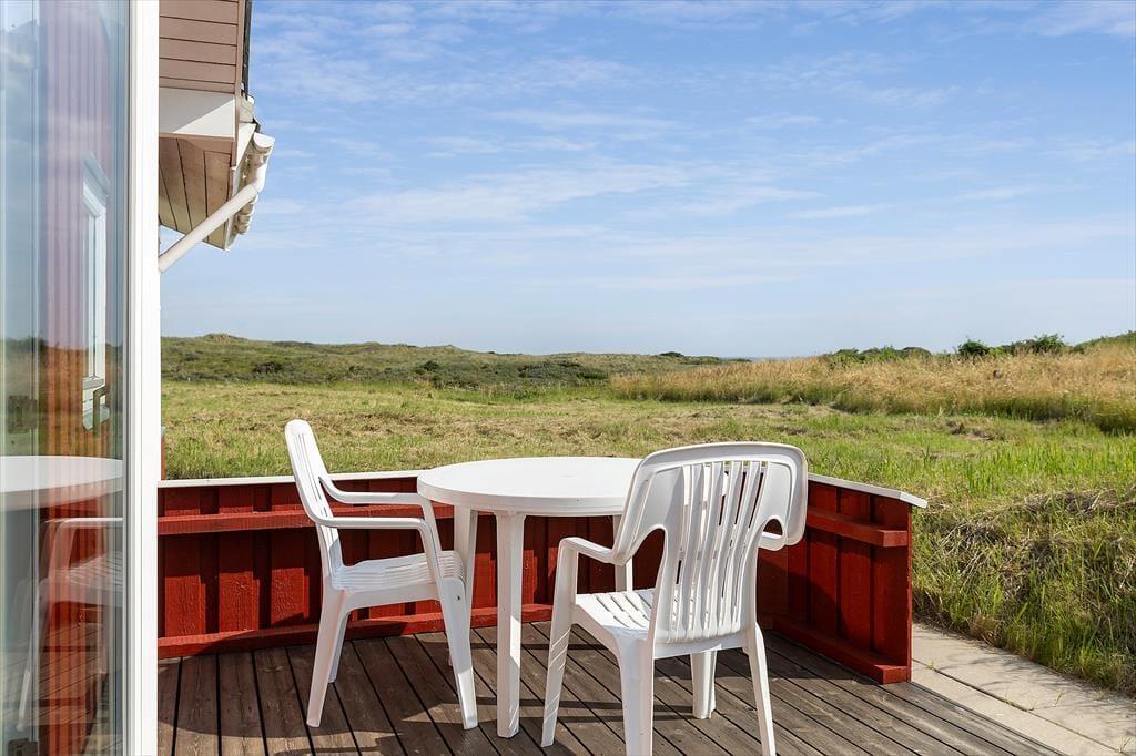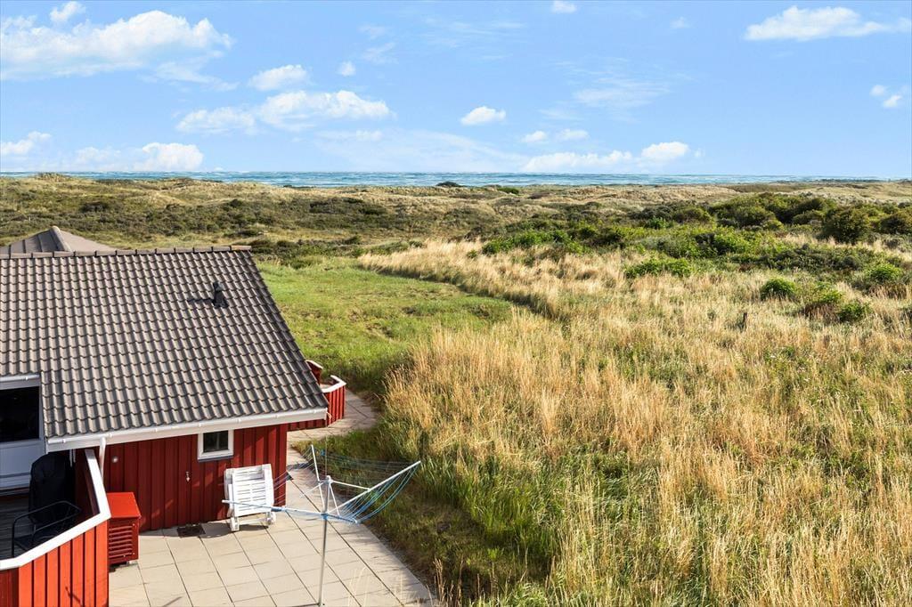 Der er noget helt særligt ved at bo i et sommerhus med havudsigt – og på Folstedvej 46 får du den luksus i fulde drag. Fra den store naturgrund kan du skue ud over klitterne og ane det blå Vesterhav i horisonten. Uanset om solen står op eller går ned, kan du nyde udsigten fra de skønne terrasseområder, der omgiver huset. Der er både plads til solbadning i liggestolen, fælles måltider i det fri og hyggelige aftener med tæpper og lanterner, når duggen begynder at falde. Den fredelige beliggenhed for enden af vejen betyder, at du stort set kun hører vinden i marehalmen og fuglene i trækronerne. Her er ingen trafik, kun ren natur og ro – og hvis du er heldig, kigger rådyrene forbi i skumringen.