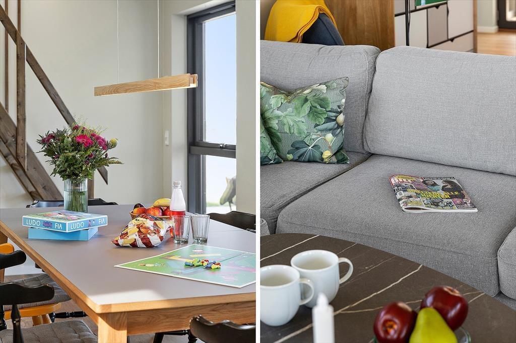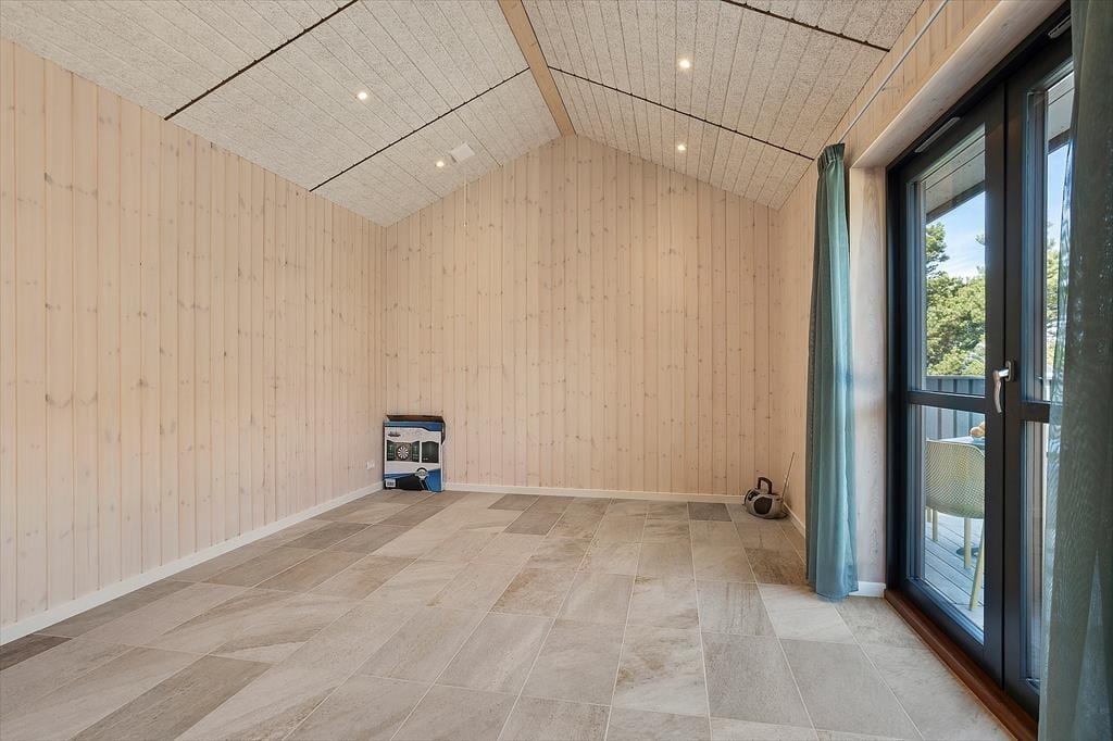 Når du ankommer til det lyse og stilfulde sommerhus på Mellemklitvej 32, sker det via snoede skovveje, der allerede fra første øjeblik indrammer den særlige ro og nærhed til naturen, som venter dig. Indenfor mærker du hurtigt, at her er tænkt på både funktionalitet og feriehygge. De lyse rum føles luftige og behagelige – ikke mindst takket være fire ovenlysvinduer, der sikrer et godt indeklima, selv når solen for alvor bager udenfor. Hvert af husets værelser har direkte udgang til terrassen, så du let kan starte dagen med en stille stund i morgensolen. På hemsen finder du en hyggelig krog med udsigt til havet – perfekt til en rolig læsestund eller et glas vin, når dagen går på hæld. I det vestvendte soveværelse er der desuden indrettet en hjemmearbejdsplads med en 27" pc-skærm, så du kan kombinere ferie og arbejde uden at gå på kompromis med komforten. Sommerhuset rummer to skønne badeværelser. Det ene er udstyret med både badekar og infrarød sauna, hvor du kan forkæle dig selv efter en dag ved havet eller i naturen. Det andet badeværelse har vaskemaskine, tørretumbler og en praktisk vaskeplads – ideelt til længere ophold eller børnefamilier. I det tilstødende aktivitetsrum finder du ekstra køle- og fryseplads, så der altid er plads til både kolde drikke og is til børnene.