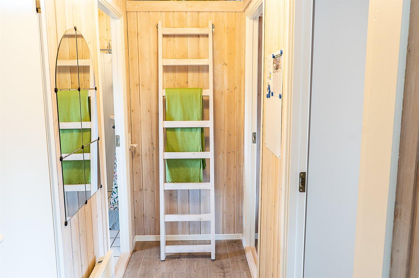Der er 1 badeværelse med bruseniche og 2 toiletter, heraf 1 gæstetoilet. Der er gulvvarme på 1 badeværelse. I saunaen er der mulighed for afslapning.