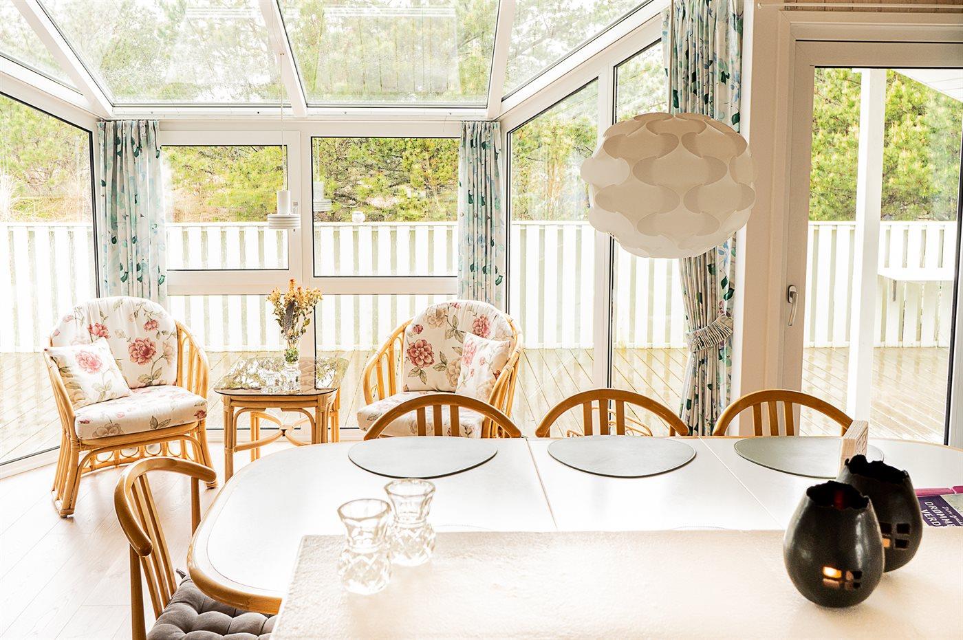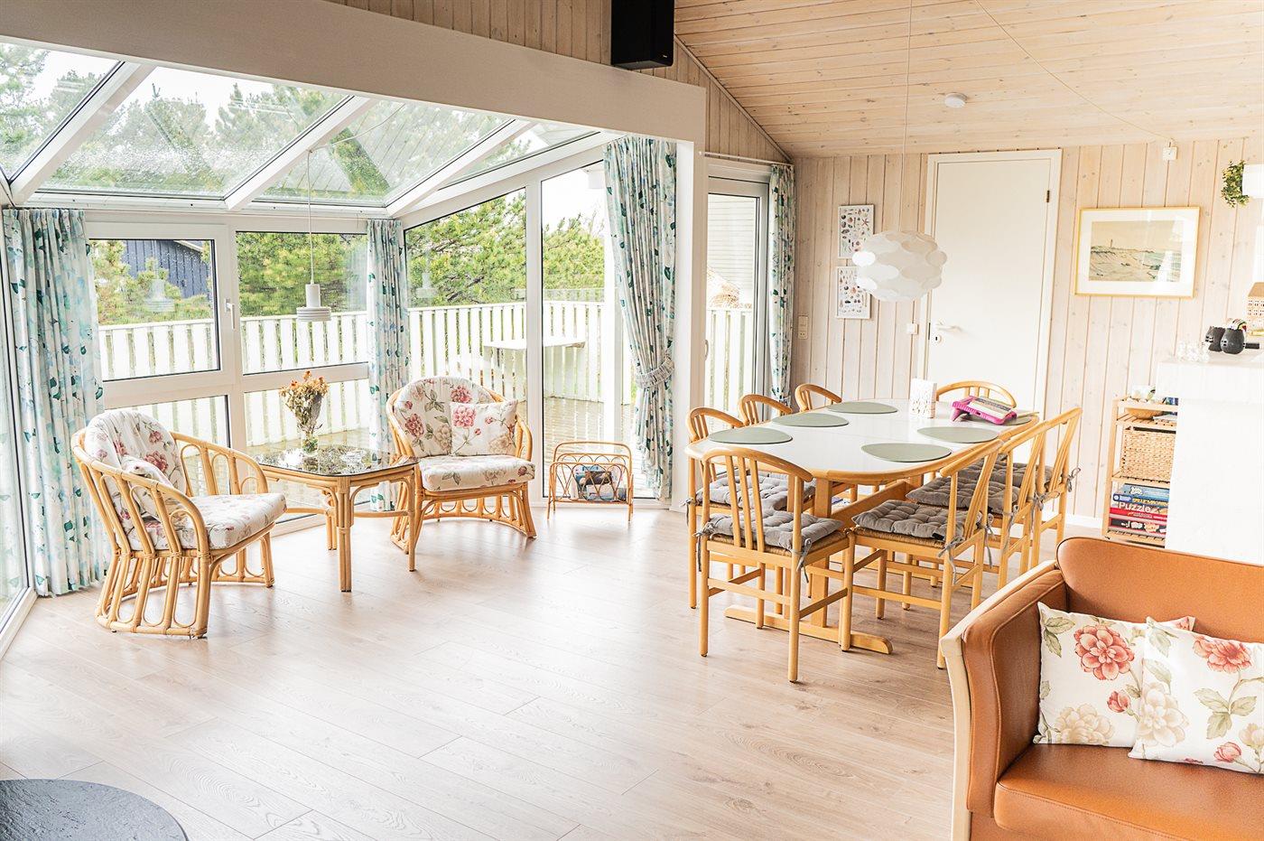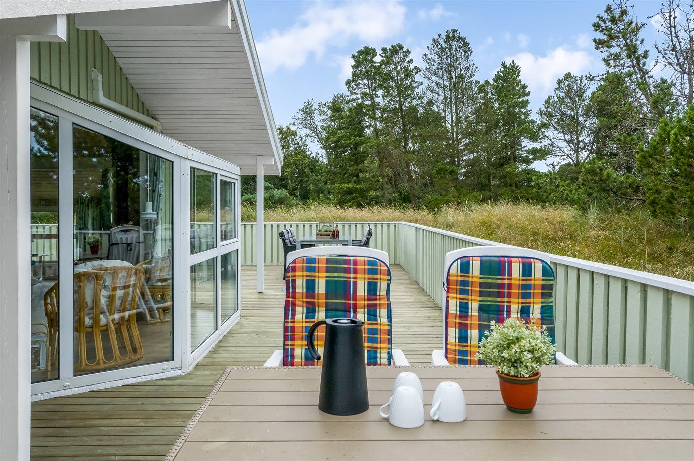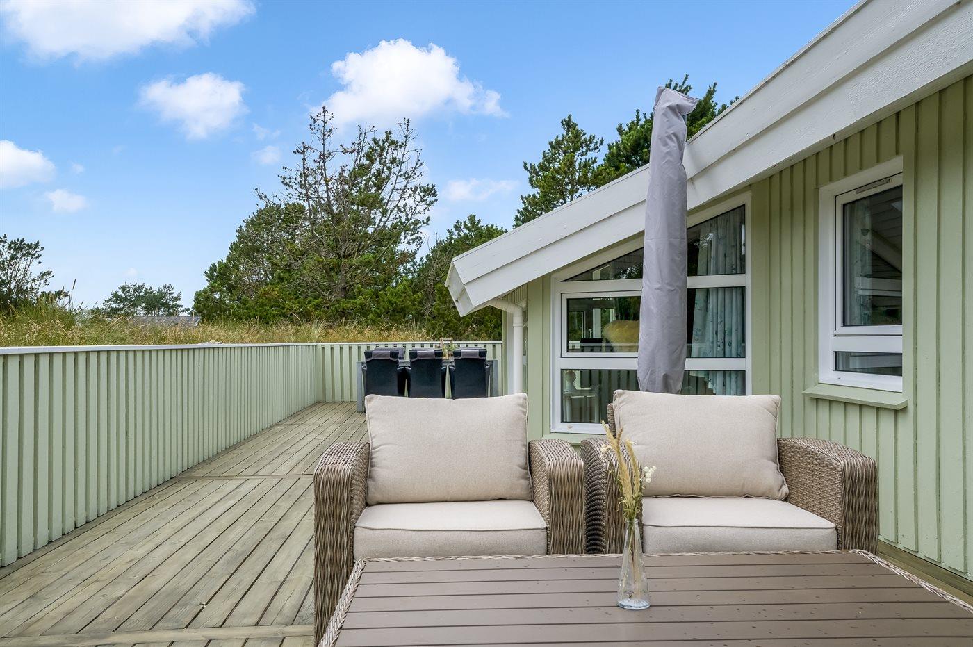 Dejligt sommerhus beliggende tilbagetrukket på en stor højt beliggende grund, på en blind vej, lige udenfor Tversted og nær stranden og Vesterhavet.
