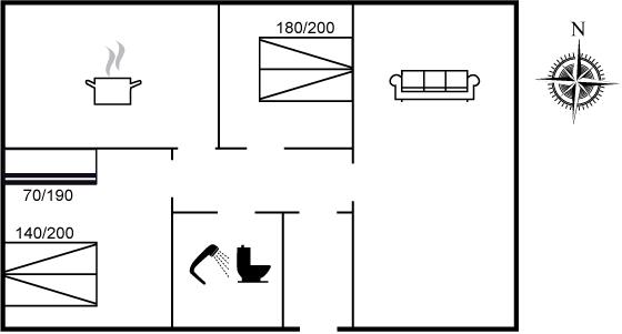 Der er i alt 2 soveværelser. Sovepladserne fordeler sig på: 4 sovepladser i dobbeltsenge. 2 sovepladser i køjeseng.