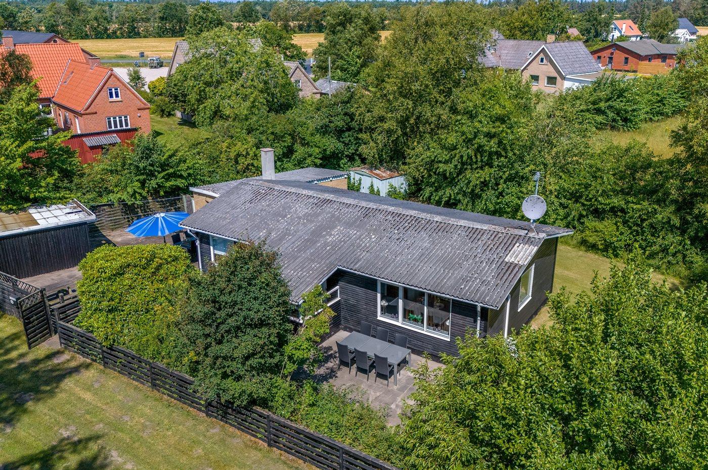 Hyggeligt byhus nær Tversted Søerne med stor terrasse og naturgrund.