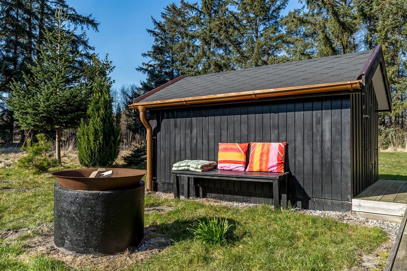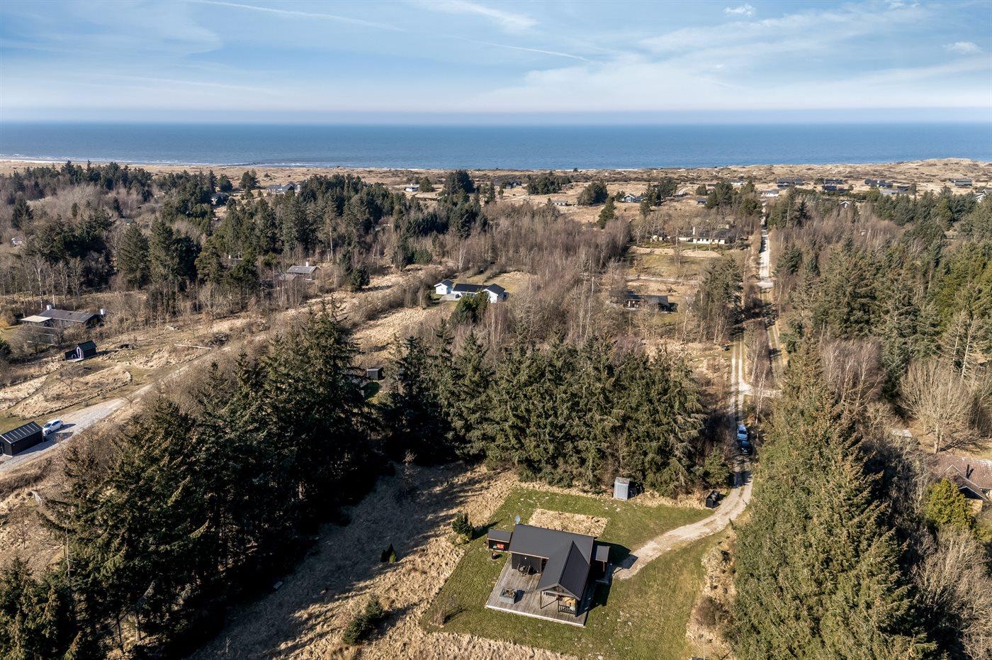 Ferieboligen er beliggende på en 5011 m² stor naturgrund. Der er 1050 m til havet. Nærmeste forretning er beliggende i en afstand af 1500 m. Til ferieboligen hører 100 m² terrasseareal. Desuden er der 30 m² overdækket terrasse. Der er redskabsrum. Grill til rådighed.