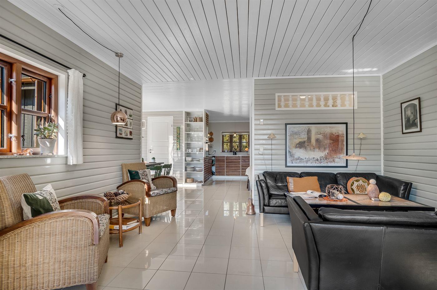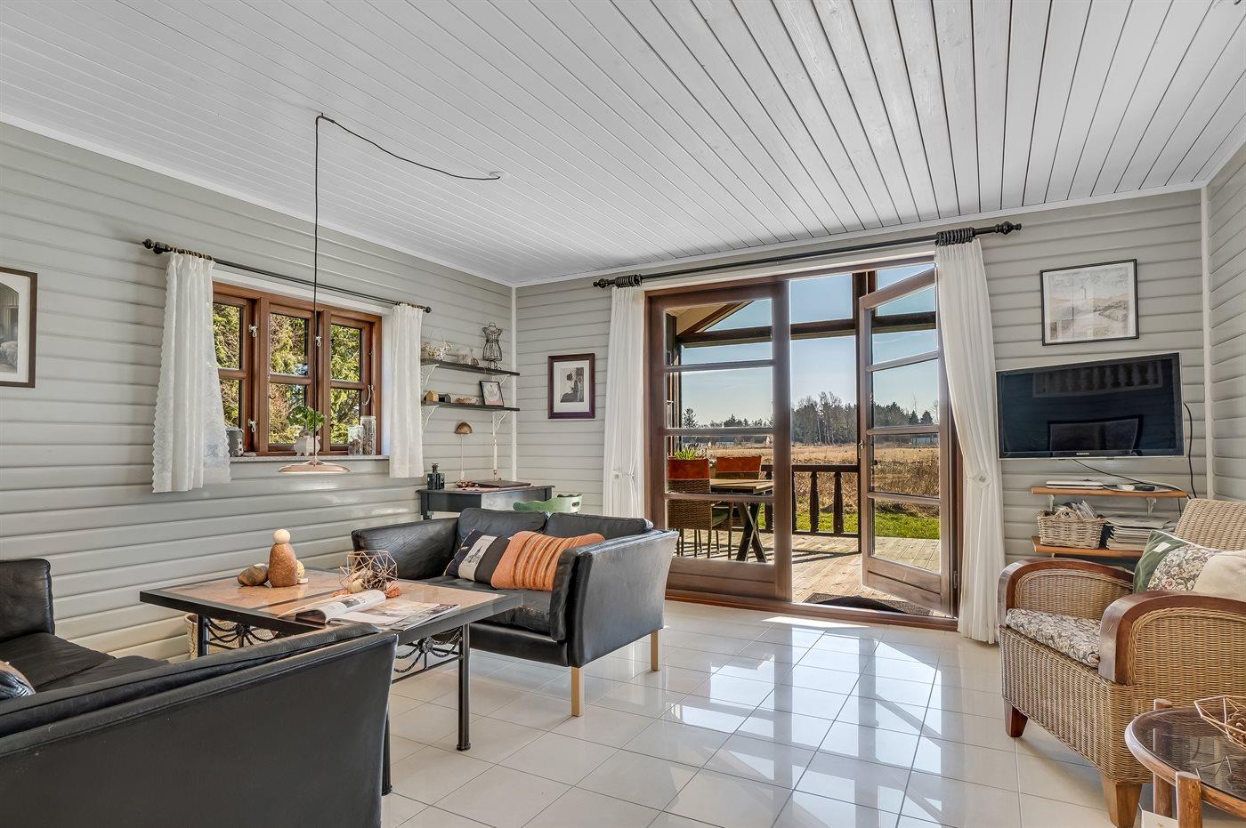 Skønt sommerhus beliggende i udkanten af et fredeligt sommerhusområde, for enden af en blind vej, på en meget stor delvis lukket grund med dejlig udsigt ud over det naturskønne landskab.