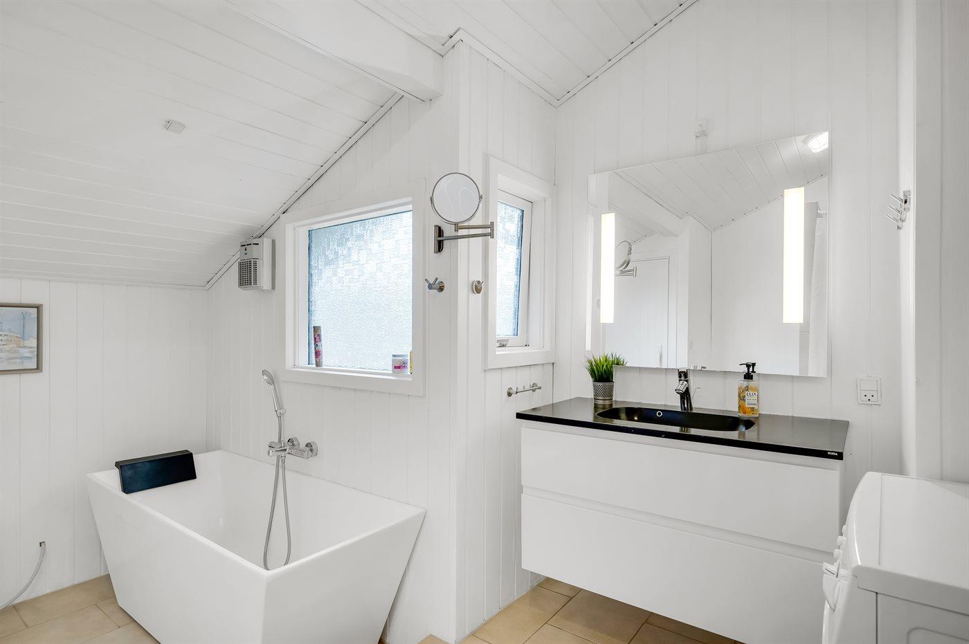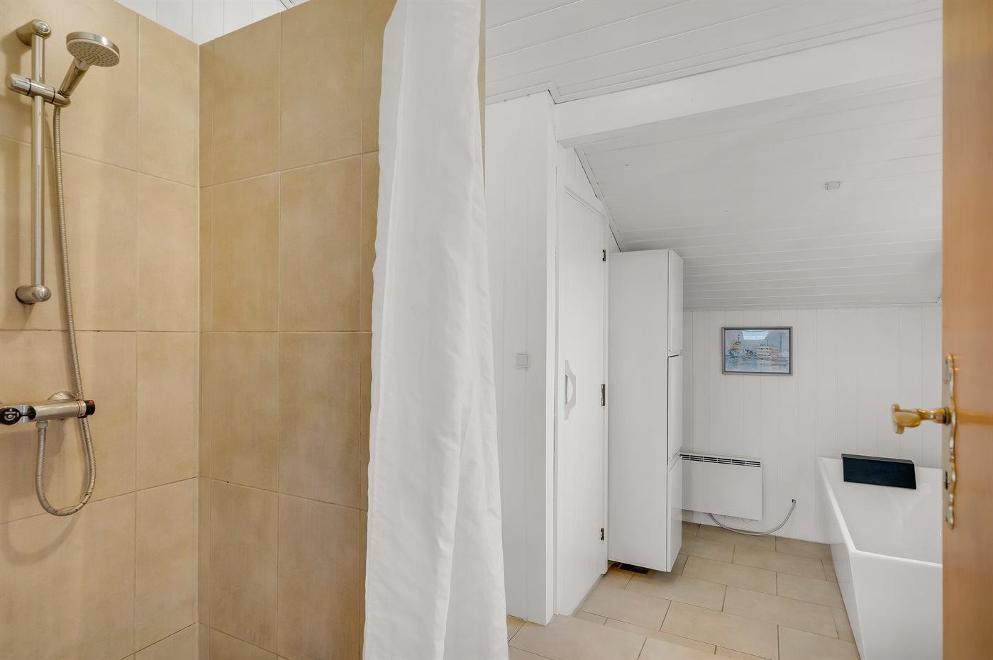 Der er 1 badeværelse med bruseniche og 2 toiletter, heraf 1 gæstetoilet. Der er gulvvarme på 1 badeværelse.. Badekar. I saunaen er der mulighed for afslapning.
