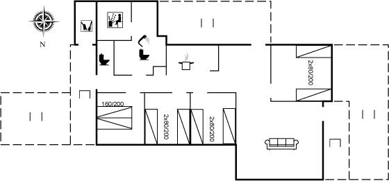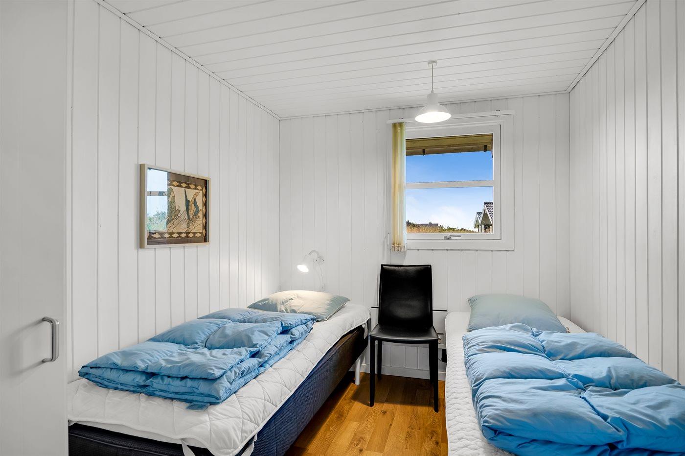 Der er i alt 4 soveværelser. Sovepladserne fordeler sig på: 2 sovepladser i dobbeltseng. 6 sovepladser i enkeltsenge. 2 sovepladser på madrasser. 2 af disse sovepladser befinder sig på husets hems. Derudover er der 1 stk. barneseng.