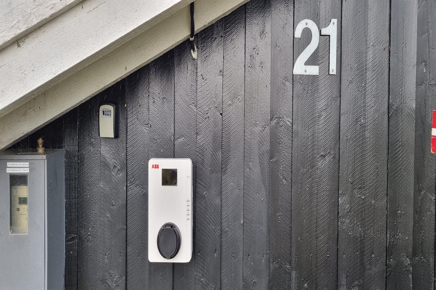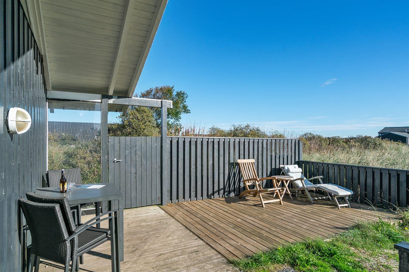 Ferieboligen er beliggende på en 2569 m² stor naturgrund. Der er 660 m til havet. Nærmeste forretning er beliggende i en afstand af 1100 m. Der er en golfbane i en afstand af 8000 m. Til ferieboligen hører 50 m² terrasseareal. Desuden er der 20 m² overdækket terrasse. Shelter. Der er installeret stik til opladning af elbil. Med 11 kW ladeeffekt. Parkering ved ferieboligen.