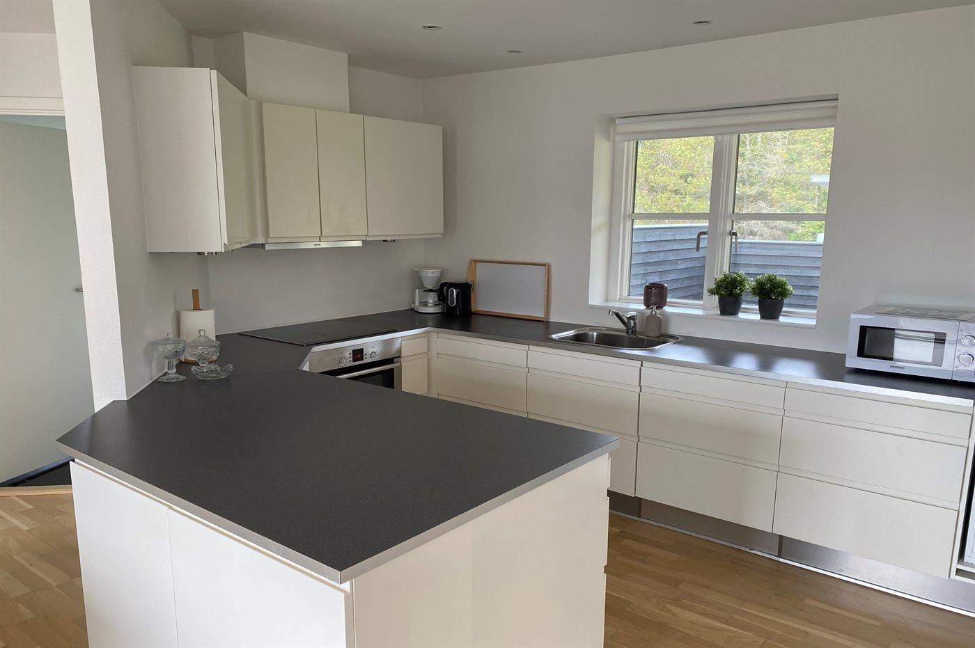 Køkkenet er udstyret med 1 køleskab. Der er 4 induktionskogeplader, varmluftovn samt opvaskemaskine.