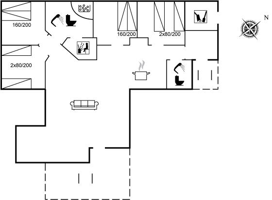 Der er i alt 4 soveværelser. Sovepladserne fordeler sig på: 4 sovepladser i dobbeltsenge. 4 sovepladser i enkeltsenge. Derudover er der 1 stk. barneseng.